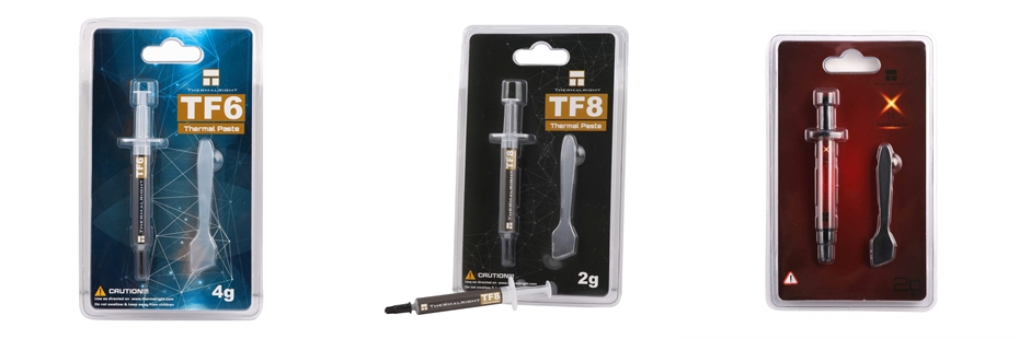 Mit den drei Hochleistungs-Wärmeleitpasten TF6, TF8 und TFX, zielt Thermalright auf die leistungsorientierten PC-Nutzer und Overclocker. Der Kühlerspezialist setzt den Fokus vor allem auf eine einfache und komfortable Aufbringung auf die CPU. Im Gegensatz zu zähen und schwierig aufzutragenden Wärmeleitpasten mit Silberanteil lassen sich die Thermalright-Pasten besonders leicht auf dem Heatspreader der CPU-verteilen. Durch den Verzicht auf ein leitendes Metall sind Kurzschlüsse an den Hardware-Komponenten zudem ausgeschlossen. Ein Vorteil und Sicherheits-Plus vor allem für ungeübte Anwender.