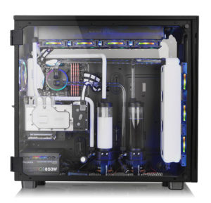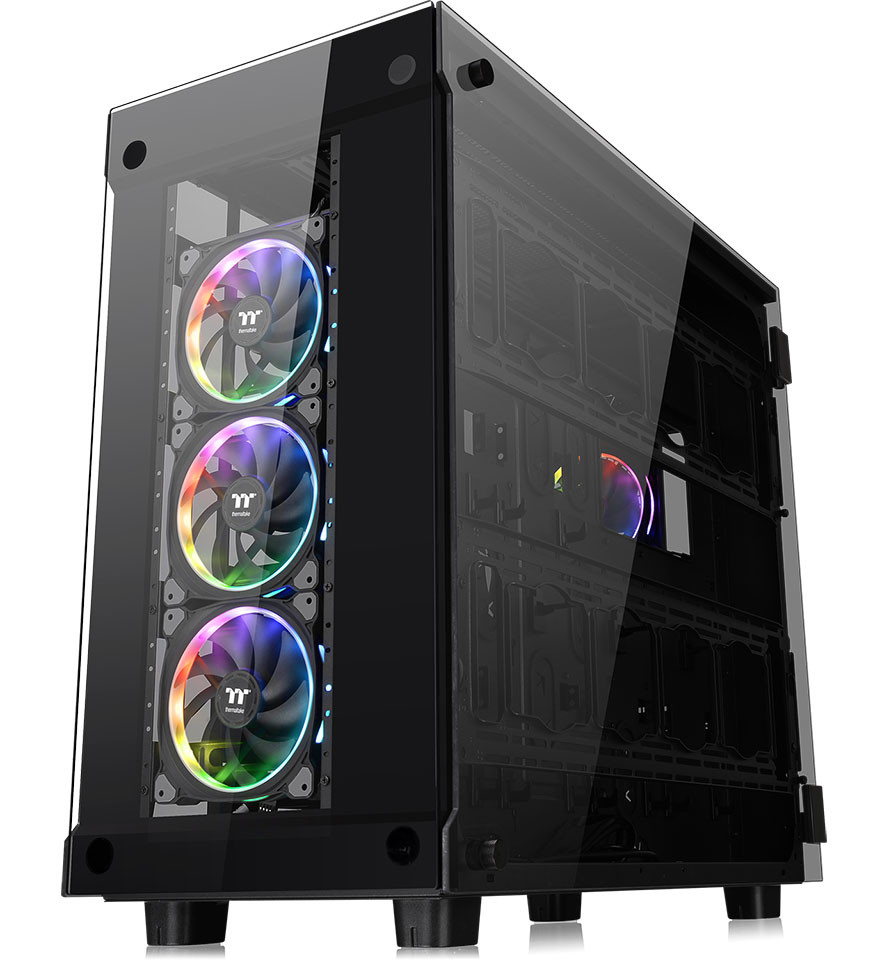 Thermaltake, ein führender Premium-Gaming-Tower-Hersteller, kündigte auf der CES 2018 in der Venetian Hotel Veronese 2402 Suite ab dem 9. Januar (Di) bis 12. (Fr) die sofortige Verfügbarkeit des neuen Thermaltake View 91 Gehärtetes Glas Edition Super Tower Chassis an. Das View 91 TG RGB ist mit den riesigen, 5 mm dicken Hartglasplatten für interne Komponenten ausgestattet und bietet eine elegante Optik, welche auch eine hervorragende Kühlung erlaubt.