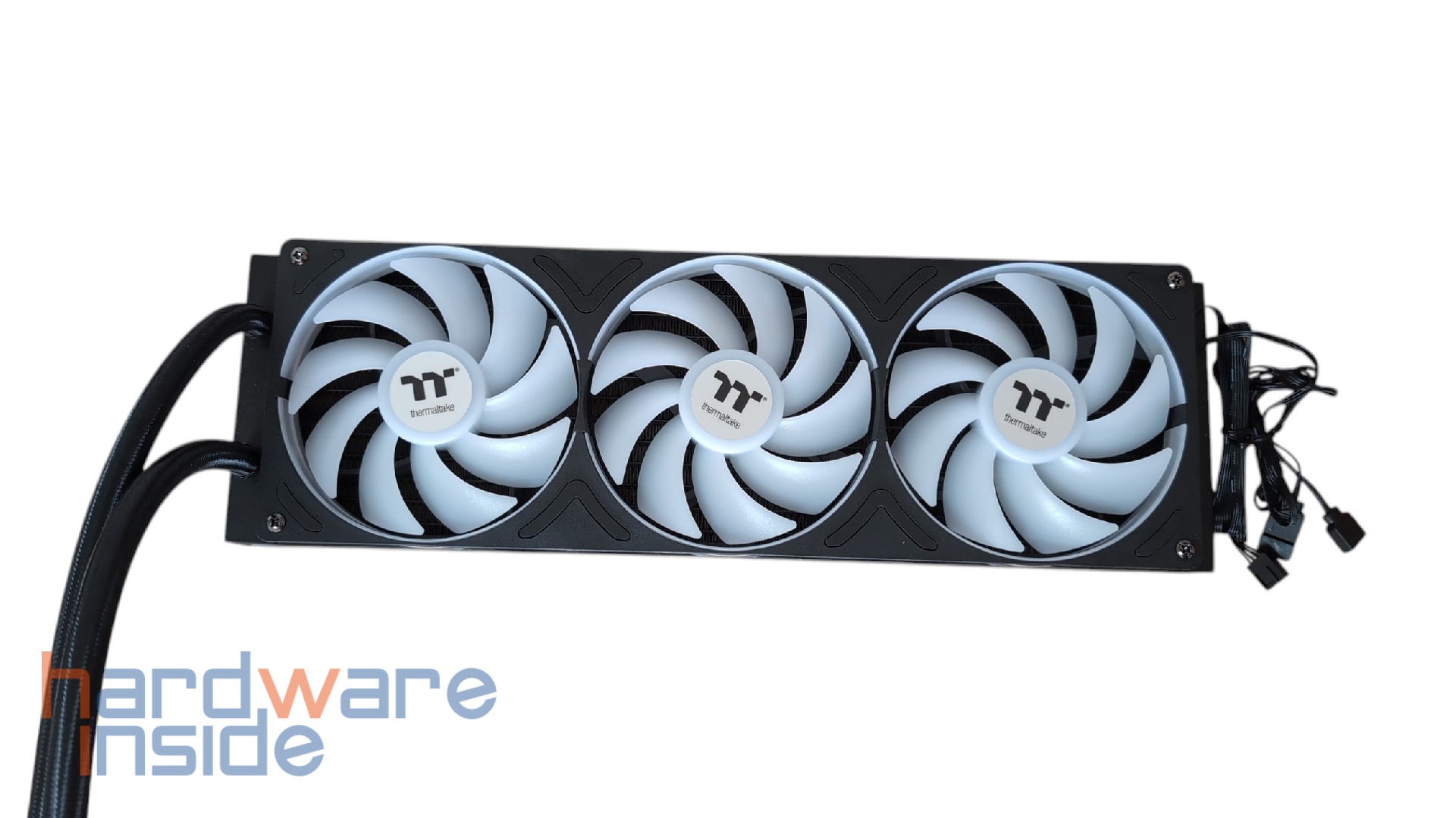 Der 360 mm Radiator setzt auf eine flache Bauweise von 27 mm und wird von einem 360 mm One-Frame-Lüfter mit weißen Rotorblättern belüftet, was nicht nur die Optik, sondern auch das Kabelmanagement verbessert, da jeweils nur ein Kabel für die Stromversorgung und die ARGB-Beleuchtung verlegt werden muss. Die Schläuche sind textilummantelt, ausreichend flexibel und mit rund 460 mm Länge auch für größere Gehäuse und Front‑ oder Deckelmontage geeignet.​