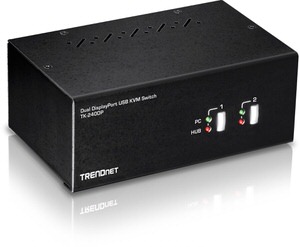 Auch der 2-Port Dual Monitor DisplayPort KVM Switch Modell von TK-240DP erlaubt die Steuerung von zwei Rechnern über nur ein HDMI-Display (3840 x 2160 @ 60Hz) sowie eine Tastatur und Maus. Der TK-240DP wurde darüber hinaus für den Anschluss auch von zwei DisplayPort Monitoren entwickelt, wodurch die Arbeitsfläche auf dem Bildschirm verdoppelt werden kann. Dank des zusätzlichen 2-Port USB 2.0 Hubs lassen sich zudem Peripheriegeräte wie Speichergeräte, Drucker oder Scanner etc. problemlos von beiden angeschlossenen Computer gemeinsam nutzen. Auch beim TRENDnet TK-240DP ist die volle Audio-Unterstützung gegeben, was die Produktivität des Arbeitsplatzes zusätzlich steigert.