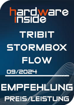 Die TRIBIT StormBox Flow liefert ein tolles Klangbild mit einer langen Akkulaufzeit. Der Bass ist für einen kleinen kompakten Lautsprecher erstaunlich gut und die Verarbeitung des Korpus tadellos. Das schlichte Design, eine Trageschlaufe für unterwegs sowie mehrere gummierte Standfüße überzeugen uns. Besonders das Cross-Model-Pairing ist ein tolles Feature, das neue Möglichkeiten für Parties und Sound, für Zuhause, Garten oder unterwegs eröffnet. Neben der Qualität stimmt hier auch der Preis, was uns bei der Qualität zu einem Preis-leistungs-Award führt.