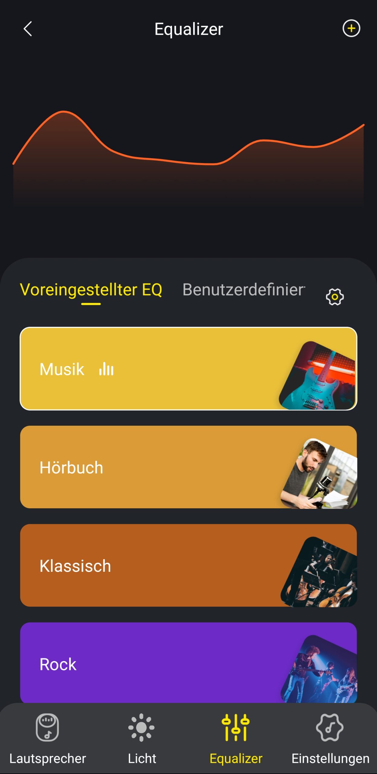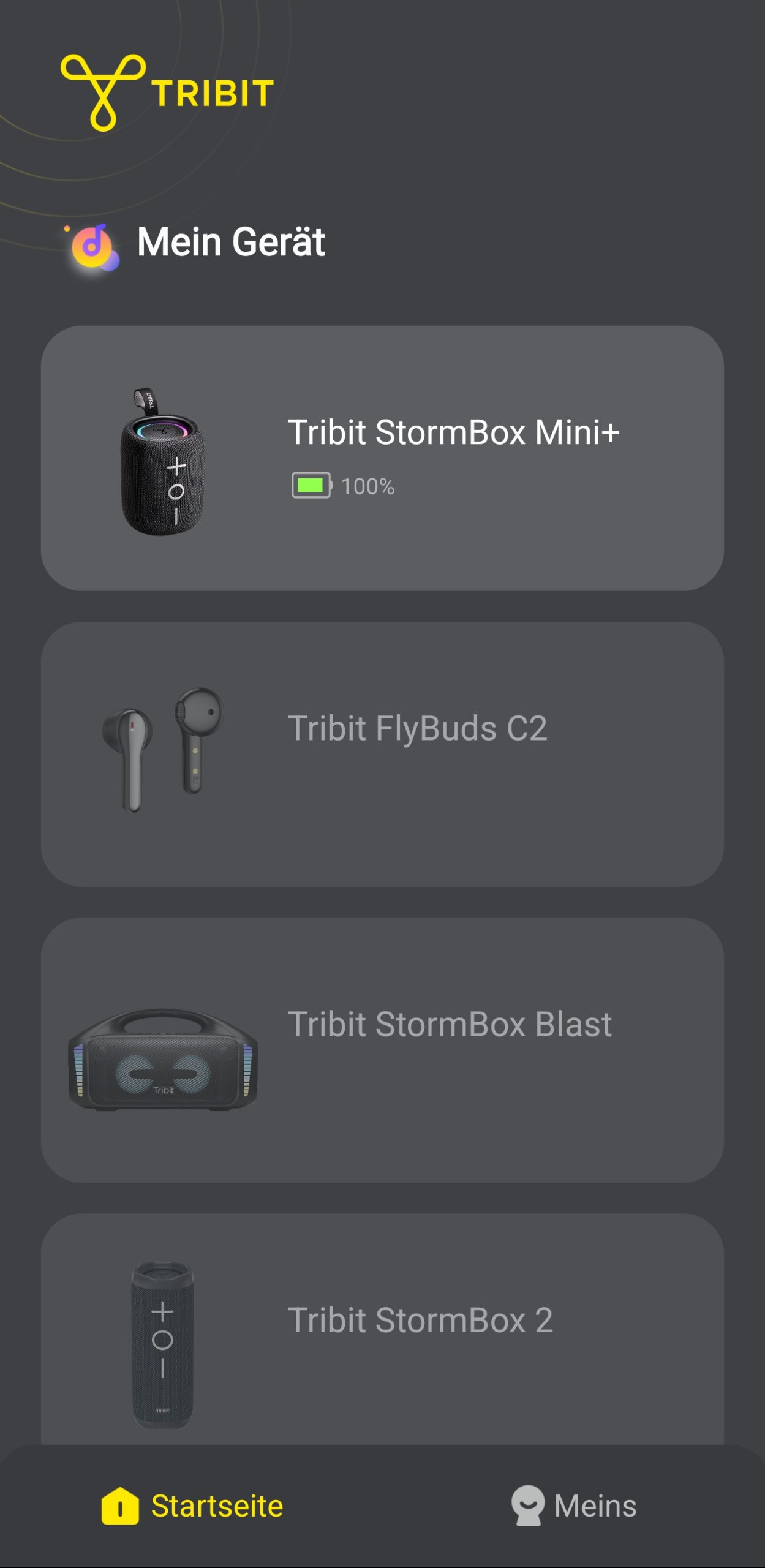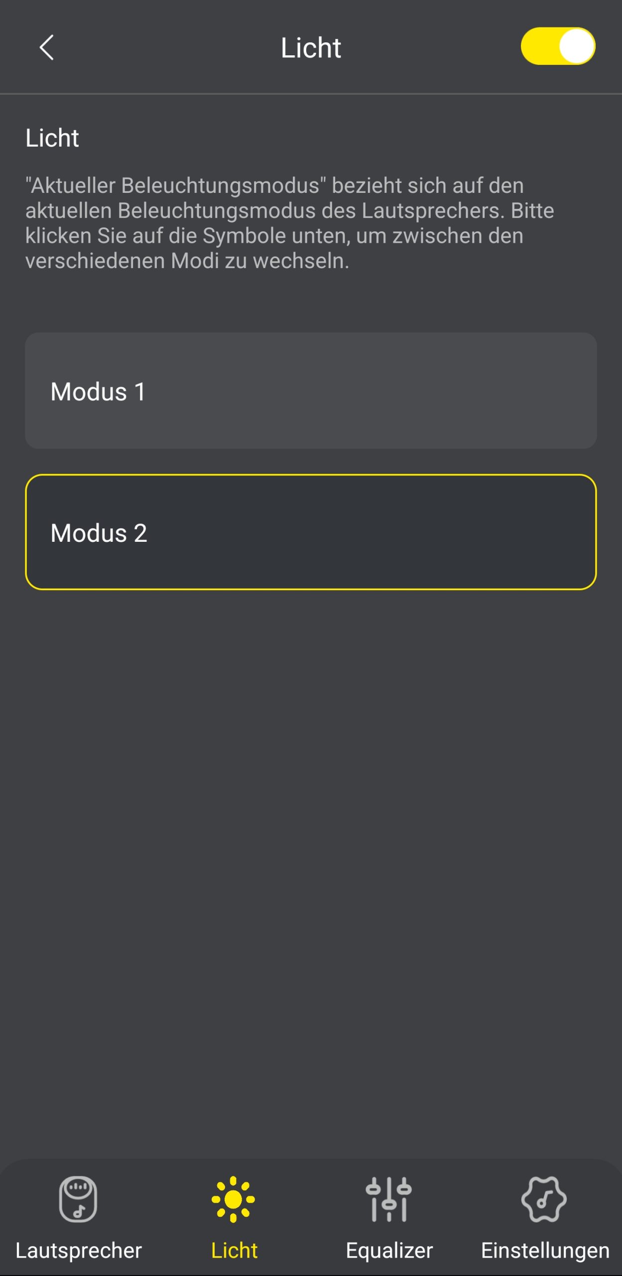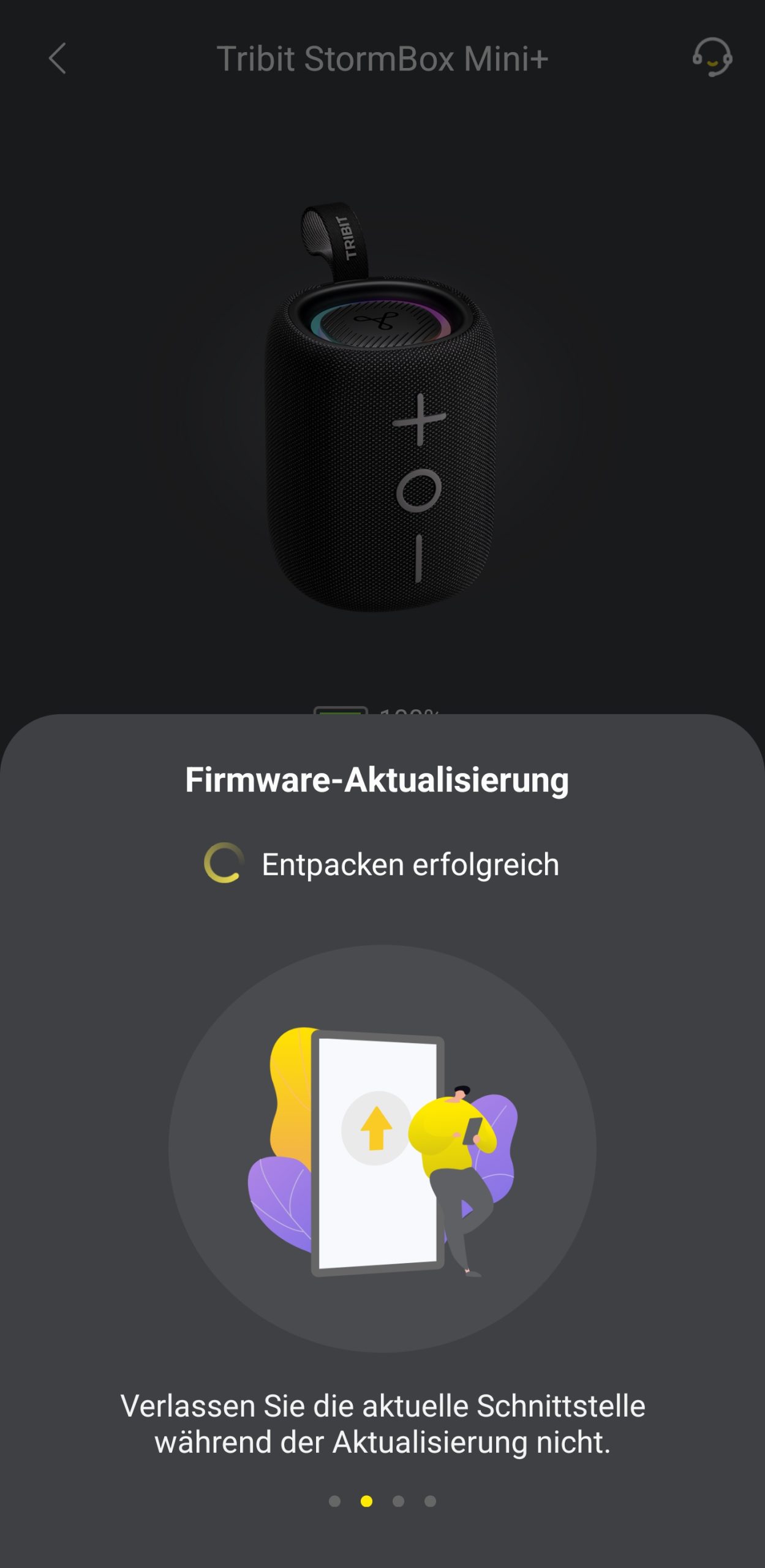 In der Tribit App wird gleich bei der Verbindung auf neue Firmware hingewiesen, die fast von selbst installiert wird, es wird nur eine Bestätigung verlangt. In der Geräteauswahl steht die Mini+ bereit. Nach der Auswahl sehen wir die Lautstärkensteuerung, Play und Pause, sowie Vor- und Zurückschalten der Titel. Weiterhin ein Bild des Produkts und den aktuellen Akkustand. An der Unterseite können vier Register gewählt werden. Bei dem Licht kann zwischen zwei Modi gewechselt werden, wobei der dies durch den Beleuchtungsknopf praktisch schneller geht und außerdem noch ausgeschaltet werden kann. Beim Equalizer sind viele Voreinstellungen vorhanden, wobei auch benutzerdefinierte Equalizer gespeichert werden können. In dem Register Einstellungen kann die Firmware-Version abgerufen, auf Werkseinstellungen zurückgesetzt, das Gerät gelöscht und die Firmware aktualisiert werden. Das Beste hierbei ist das Herunterfahren über Distanz.