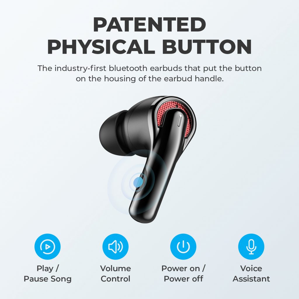 Mit nur 4,5 Gramm sind FlyBuds C1-Kopfhörer echte Leichtgewichte. Das garantiert zusammen mit den sechs mitgelieferten Ohrstöpseln, die es jedem Nutzer ermöglichen, die perfekte Passform zu finden, enormen Komfort und zuverlässigen Sitz auch bei länger andauernder Nutzung und Bewegung. Darüber hinaus sind die mechanischen Steuerungstasten auf den Flybuds so designt, dass ihre Bedienung keinen zusätzlichen Druck auf den Gehörgang ausübt.
