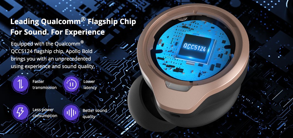 Um einen Teil des Marktes zu erhalten, hat sich Qualcomm® für die Zusammenarbeit mit seinem alten Partner Tronsmart entschieden, um Apollo Bold zu entwickeln. Dieses Mal setzt Qualcomm seinen Flaggschiff-Chip QCC5124 ein, der noch in keinem Produkt verwendet wurde, um Tronsmarts erste Hybrid-Ohrhörer mit aktiver Geräuschunterdrückung zu unterstützen. Apollo Bold wird von Grandsun hergestellt, einer der größten Qualcomm®-Chipverarbeitungsfabriken.