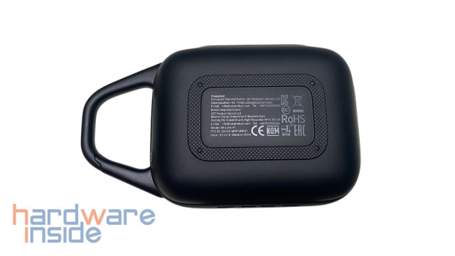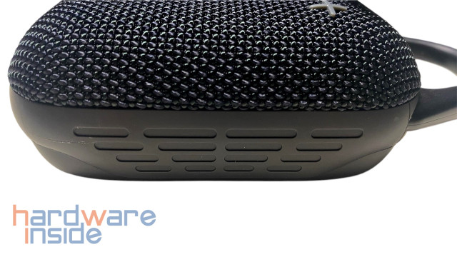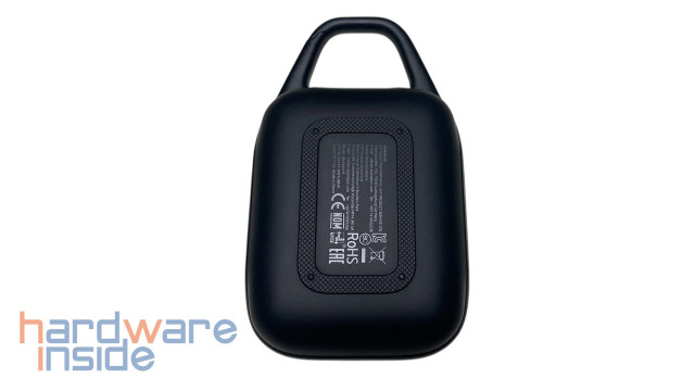 An der Oberseite des Gehäuses befindet sich ein Karabiner aus Metall, der sich nach innen öffnen lässt, um den kleinen Lautsprecher bequem befestigen zu können. So kann er praktisch überall hin mitgeführt werden.