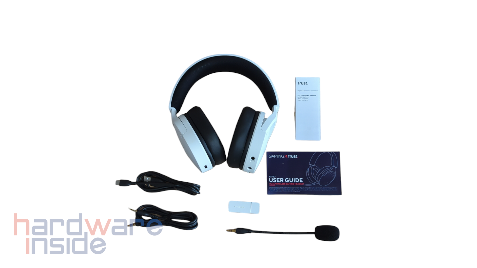 Neben dem Trust GXT 491W Fayzo Gaming Headset finden wir noch folgende Dinge im Lieferumfang: