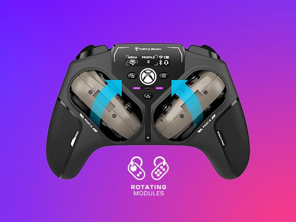 Der Stealth Pivot Wireless Smart Controller wurde für ein besonderes Gameplay entwickelt. Die drehbaren Tasten- und Stick-Module wechseln schnell zwischen den Haupttasten-Layouts für FPS-, Action- und Rennspiele auf der einen Seite und den drehbaren Layouts für Kampf- und Retrospiele auf der anderen Seite. Gamer:innen können kabellos und verzögerungsfrei auf dem PC mit dem 2,4-GHz-Wireless-Sender sowie im kabelgebundenen Modus für PC und auf Xbox-Konsolen mit dem mitgelieferten USB-Kabel spielen. Außerdem können sie den Controller auch mit kompatiblen Android-Geräten und Smart-TVs über Bluetooth 5.2 verbinden. Der Stealth Pivot Controller verfügt außerdem über das Connected Command Display von Turtle Beach, dass eine Vielzahl von Anpassungsmöglichkeiten bietet, darunter auch die Möglichkeit, soziale Benachrichtigungen anzuzeigen. Zusätzliche Anpassungen sind über die Turtle Beach Control Center 2 App möglich, die auf Xbox-Konsolen und PC sowie iOS- und Android-Geräten verfügbar ist.