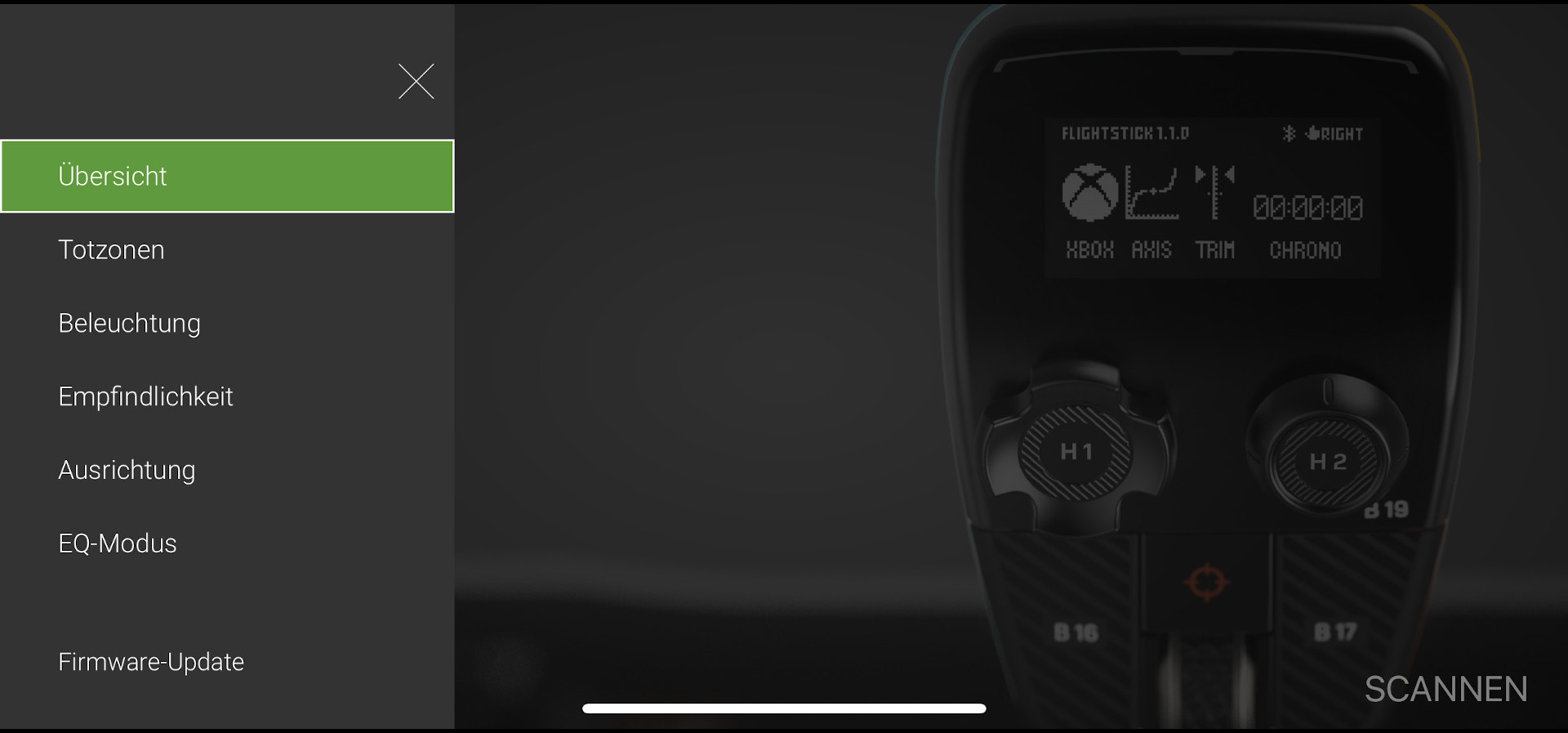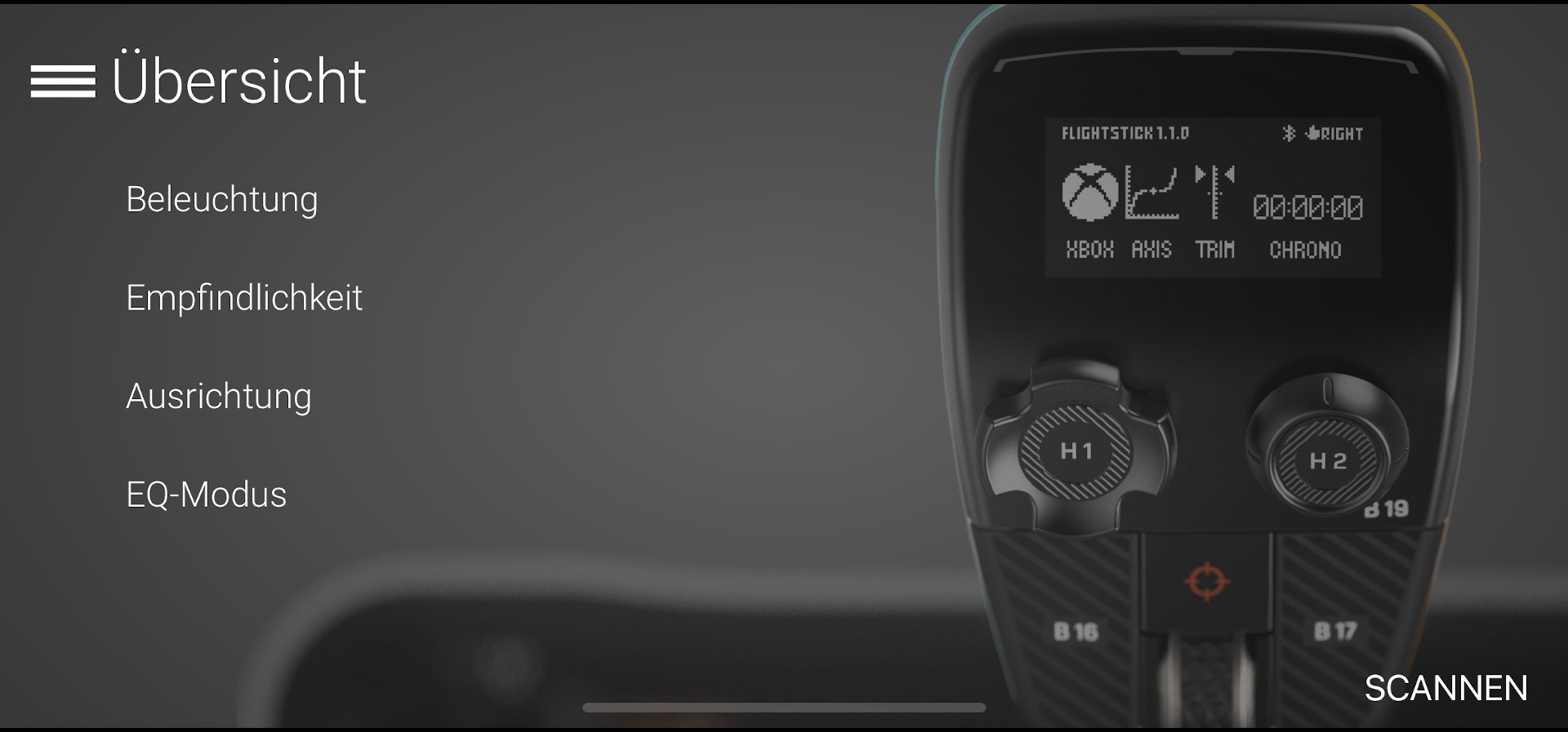 Sehr gelungen finden wir das OLED-Flightmanagement-Display auf der Oberseite des Sticks. Neben der Möglichkeit, die globalen Einstellungen vorzunehmen, können hier z. B. Daten zur Trimmung der Flugachse angezeigt werden, was unserer Meinung nach ein wirklich nützliches Feature darstellt.