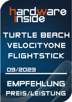 Der TURTLE BEACH VELOCITYONE Flightstick bietet nicht nur Einsteigern die Möglichkeit, kostengünstig in die Lüfte zu gehen. Neben seiner guten Verarbeitung punktet er ebenfalls mit einer Vielzahl von konfigurierbaren Tasten, zwei Schubreglern und einer angenehmen LED-Beleuchtung. Durch sein neutrales Design am Steuerknüppel kann er sowohl von Rechts- als auch von Linkshändern genutzt werden. Das integrierte LCD Display (Flight Management Display) bietet neben einer direkten Konfiguration auch die Anzeige wichtiger Parameter. Mit dem gut gewählten Widerstand des Steuerknüppels sind auch präzise Flugmanöver kein Problem, so macht fliegen Spaß. Bei hektischen Gefechten kann es allerdings passieren, dass sich die Basis von der Tischplatte abhebt. Was sich allerdings mit etwas Übung vermeiden lässt. Ansonsten kann der VELOCITYONE fest montiert werden. Im Preisvergleich ist der TURTLE BEACH VELOCITYONE Flightstick derzeitig für 129,99 € gelistet und verdient sich damit unseren Preis-/Leistungsaward.