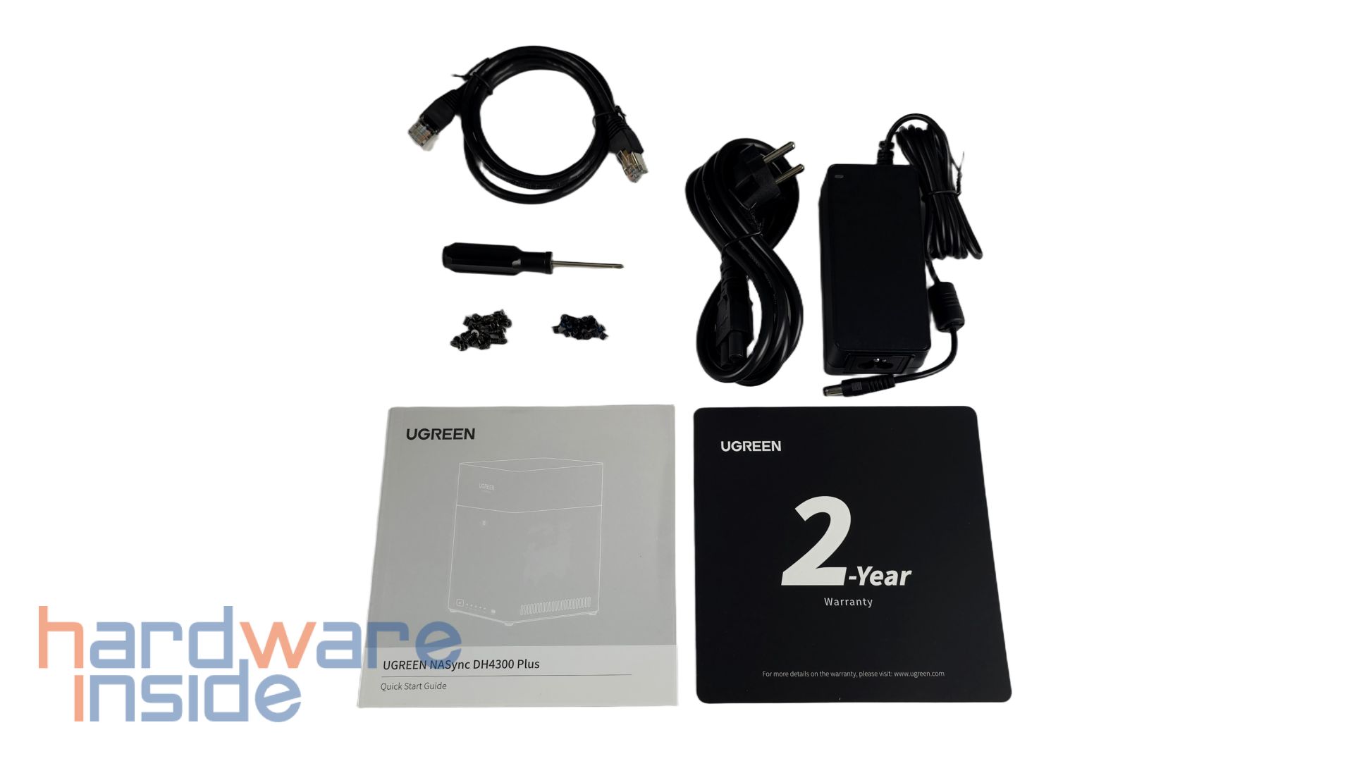 Der Inhalt liegt ordentlich in Karton und Schaumstoffformen verstaut. Das NAS ist zusätzlich in eine durchsichtig-grauen Tüte gehüllt, sowie jedes Teil des Zubehörs im Lieferumfang. Folgend wird der Inhalt aufgezählt:
