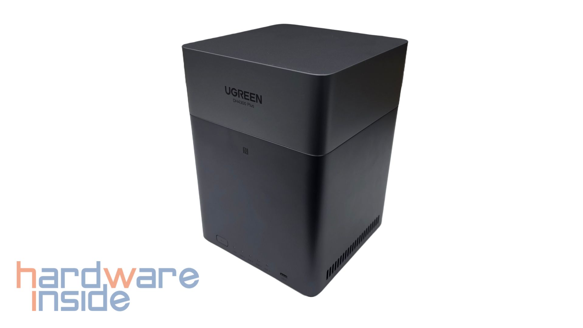 Zur einfachen Verbindung und Synchronisation, in erster Linie für Smartphones, besitzt das UGREEN NASync DH4300 Plus an der Front ein NFC-Tag, womit man sich schnell anmelden kann.