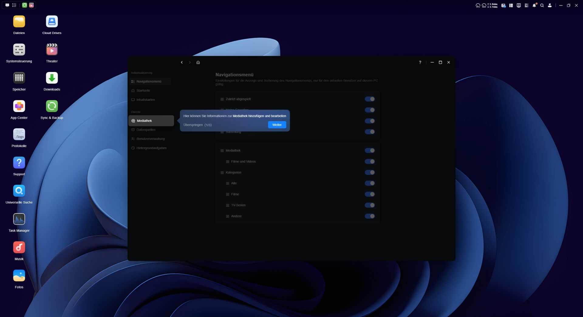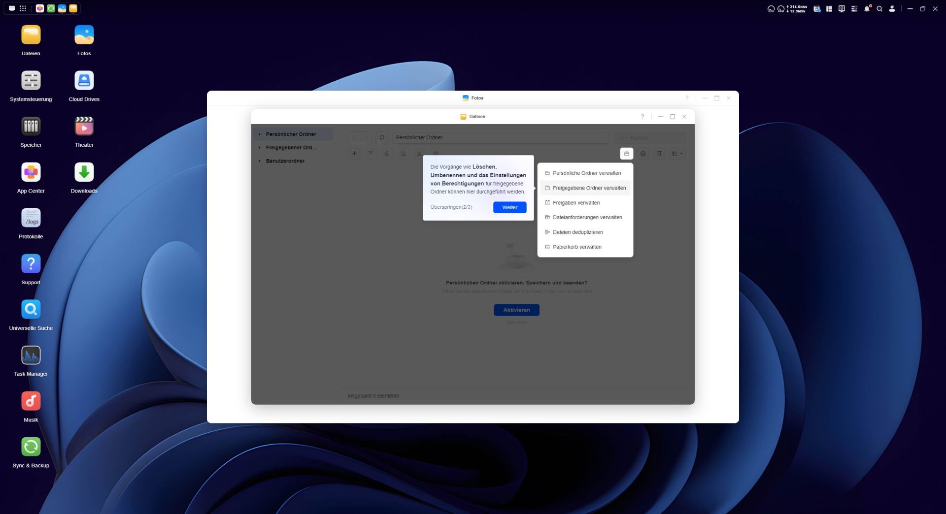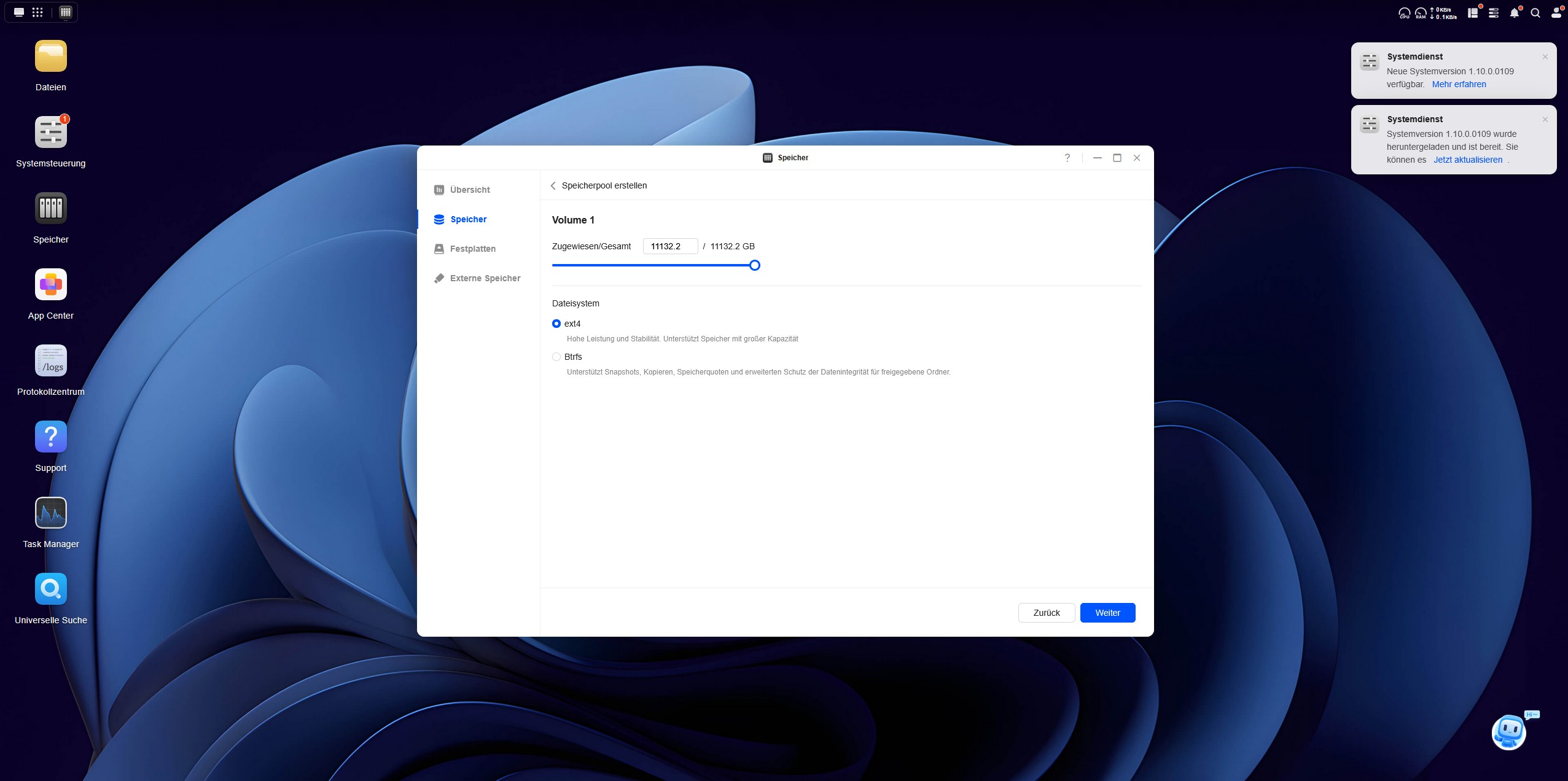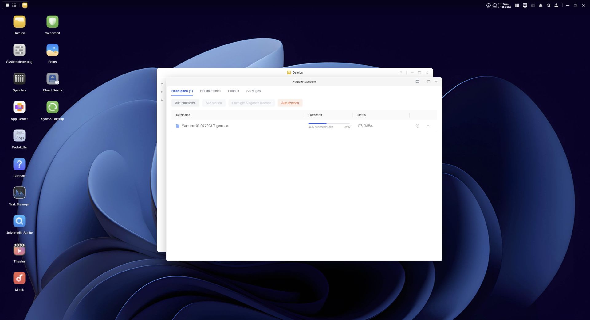Das Betriebssystem des UGREEN NASync DH4300 Plus ist fortschrittlich und nicht nur ein simples Datengrab. Der Desktop des UGOS Betriebssystems wirkt schon auf den ersten Blick aufgeräumt. Unter UGOS versteht man das Ugreen-Operation-System und es läuft auf der Systemversion 1.10.0.0109. Das UGOS basiert auf einem Linux-Kernel und ist eine speziell angepasste Distribution, die für das NAS-System optimiert wurde. UGOS wurde in den letzten Jahren stark weiterentwickelt und bietet mittlerweile viele Features wie verbesserte Backup-Optionen, optimierte Docker-Integration und stabilere Netzwerkfunktionen. Es bietet Unterstützung für zehn Speicherformate und fünf Protokolle wie beispielsweise SMB, NFS und FTP, wodurch es flexibel in Netzwerken eingebunden werden kann.