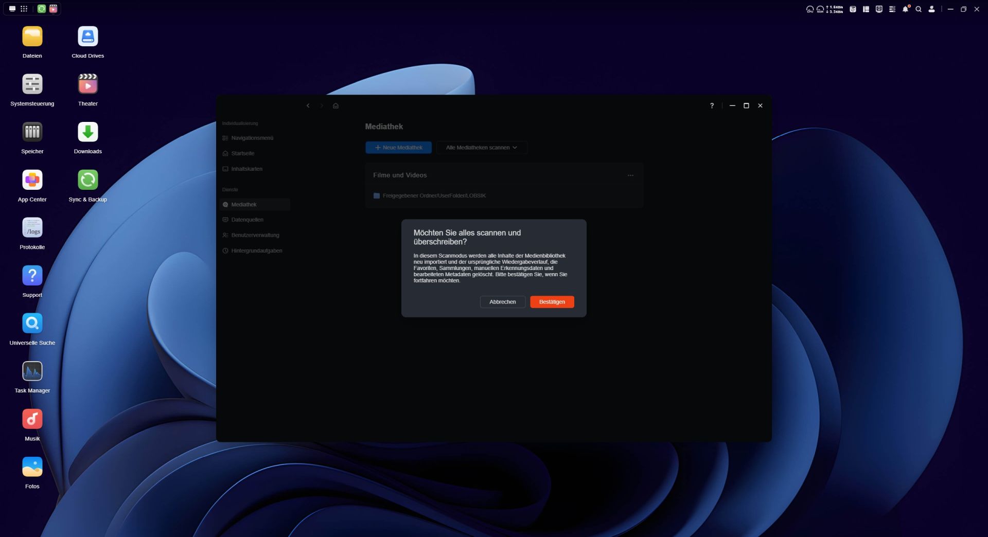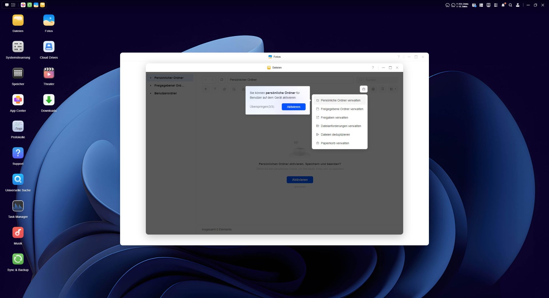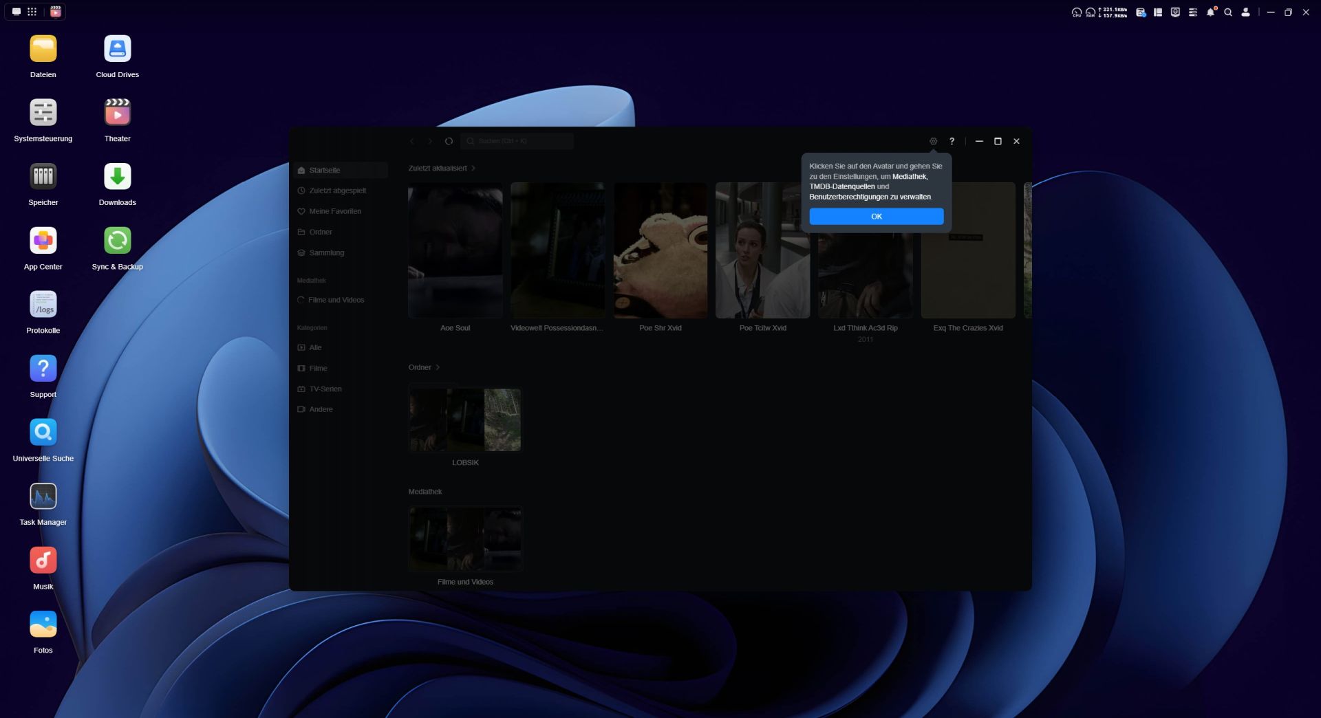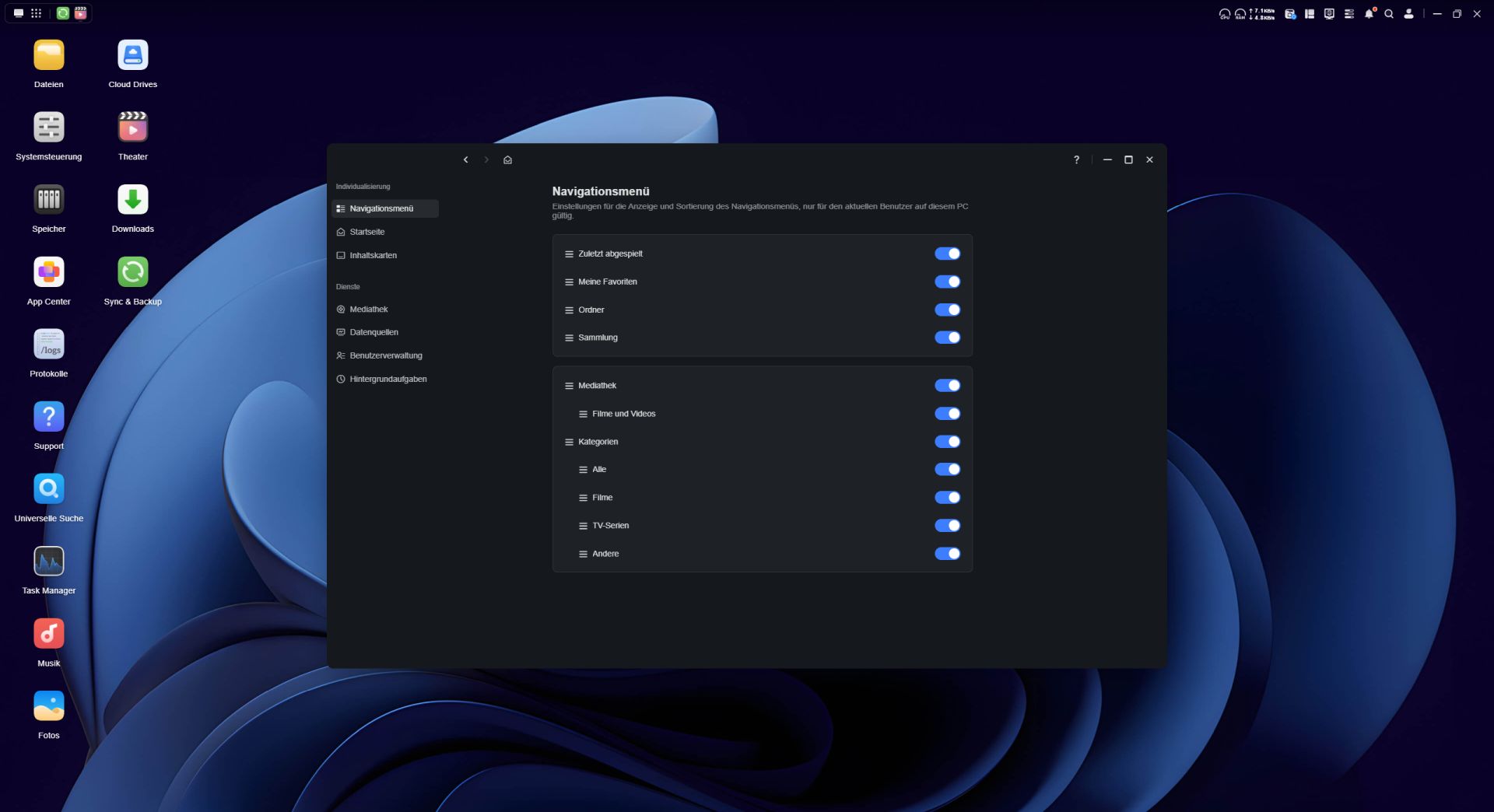 Das App Center ermöglicht eine unkomplizierte Installation zusätzlicher Anwendungen auf dem NAS. Allerdings fällt die Auswahl im Vergleich zu anderen NAS-Systemen recht überschaubar aus. Der Großteil der angebotenen Programme stammen aus dem UGREEN NASync-Ökosystem, während Apps von Drittanbietern bislang nur vereinzelt verfügbar sind. Besonders erwähnenswert ist die Integration von Docker, mit den sich Container direkt auf dem NAS betreiben lassen. Für die Verwaltung von Medieninhalten stellt UGREEN eigene Anwendungen wie „Fotos“, „Musik“ und das „Videozentrum“ bereit.