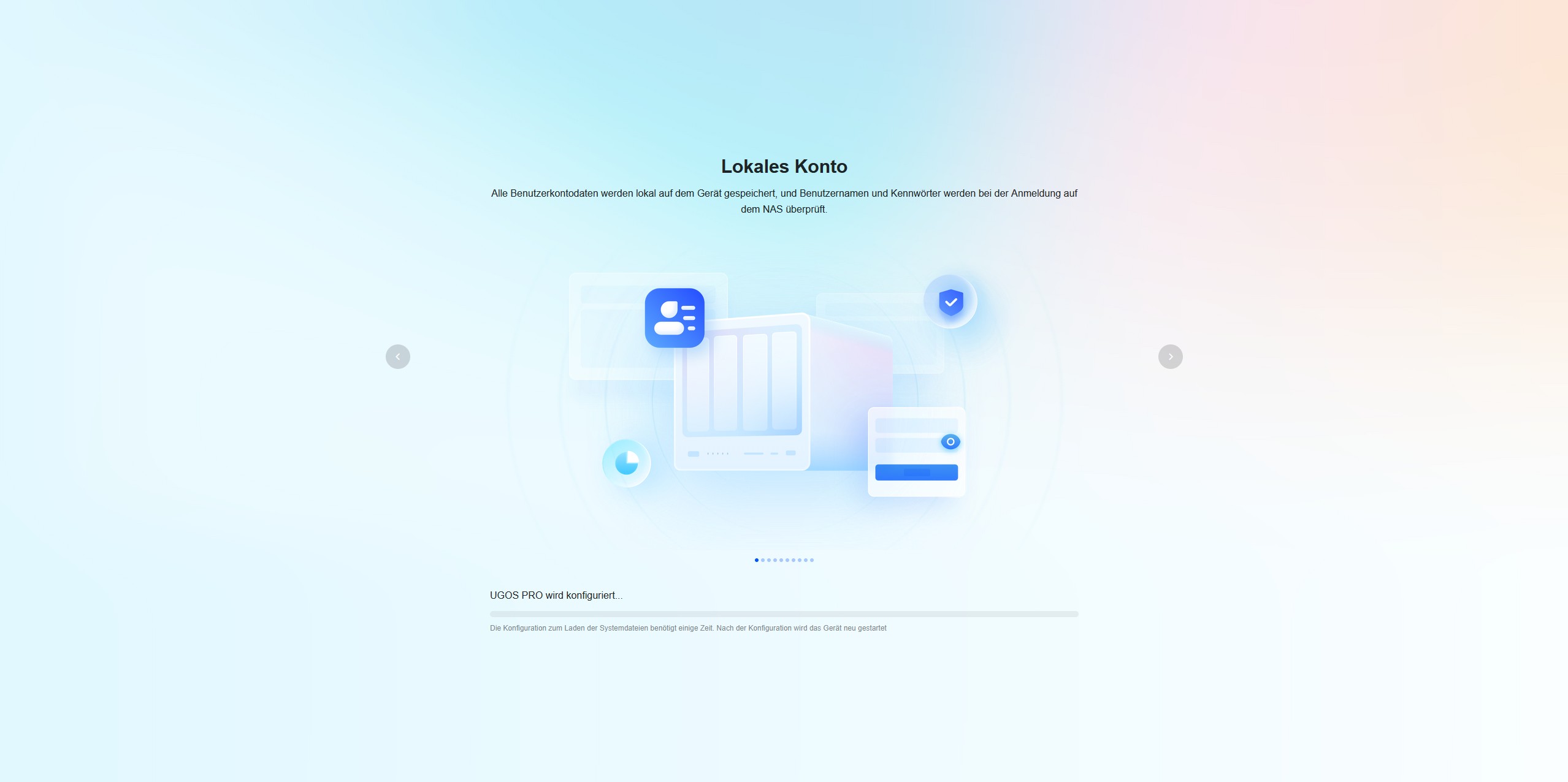 Wir starten das NAS durch einen kurzen Druck auf den linken Einschaltknopf. Das NAS-System fährt hoch, was durch ein Aufleuchten der LEDs erkenntlich wird. Als nächstes öffnen wir unseren Browser und rufen find.ugnas.com auf, um das NAS anzusprechen. Die Software für den Computer funktioniert hierbei genau gleich, wie die Anmeldung durch den Browser. Das DH4300 Plus wird im Netzwerk mit Modellnamen und Netzwerkinformationen angezeigt, es wird durch ein kleines Produktbild dargestellt und ist nun für die Initialisierung bereit. Auf der nächsten Seite kann das NAS benannt werden, wobei den Nutzungsbedingungen zugestimmt werden muss, um fortzufahren. Sogleich wird ein Adminkonto mit Passwort angelegt, was mit einem Bild personalisiert werden kann. Zuletzt kann noch die persönliche E-Mail eingebunden werden, um einen Zugriff jederzeit und überall zu ermöglichen, dieser Schritt ist aber auch überspringbar.