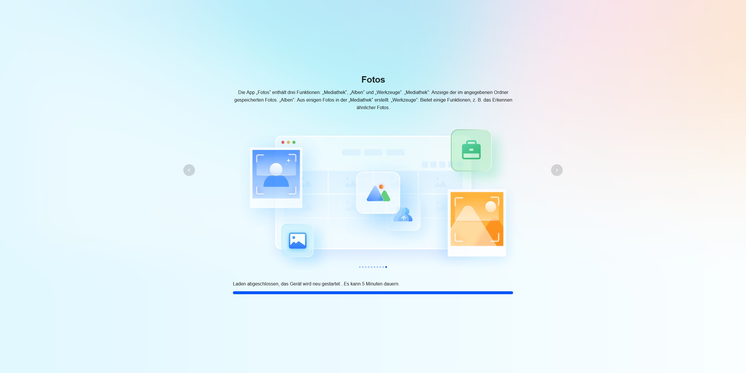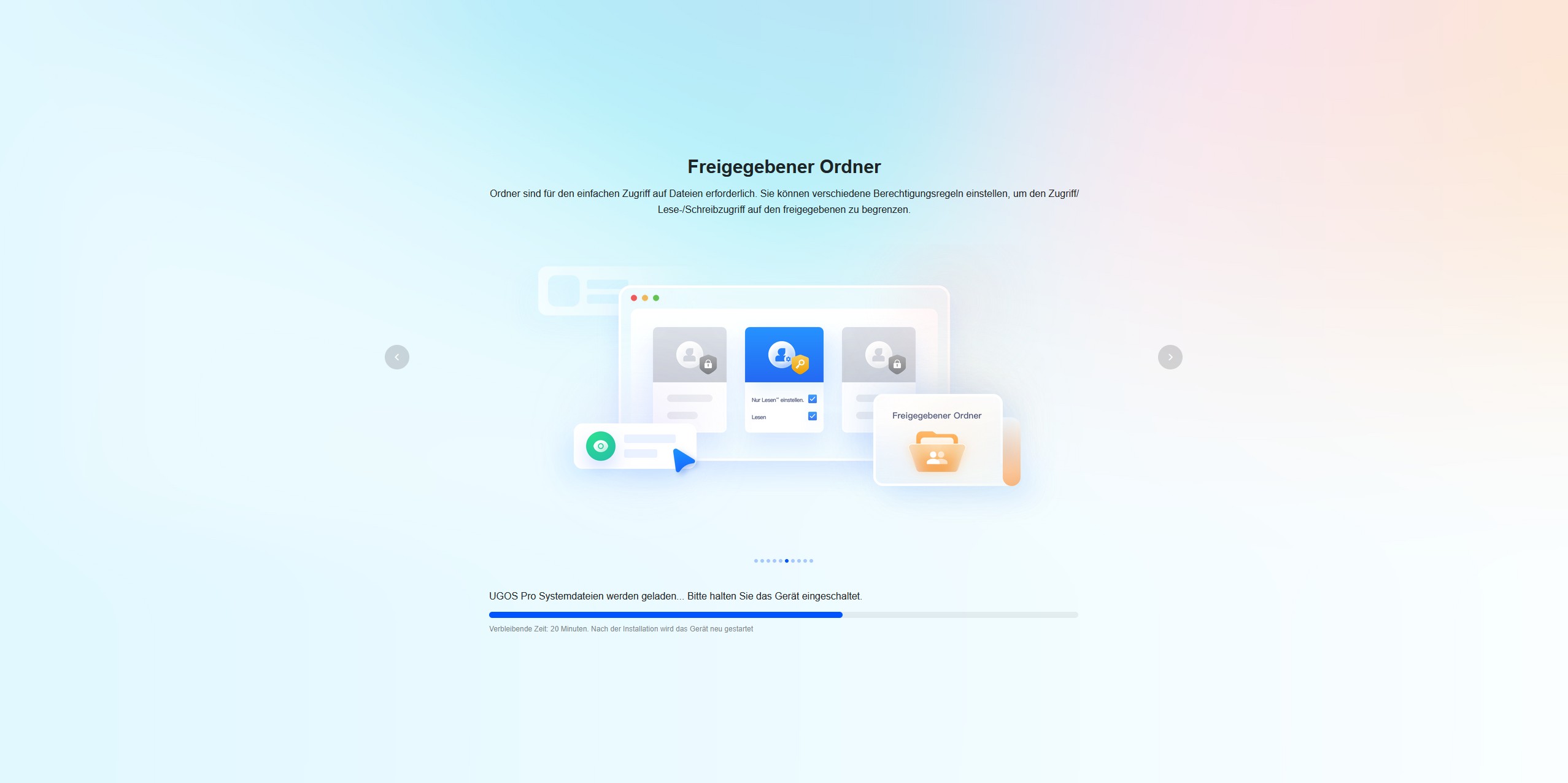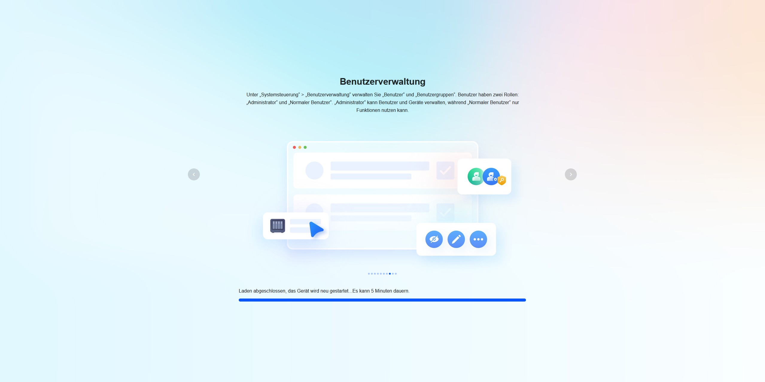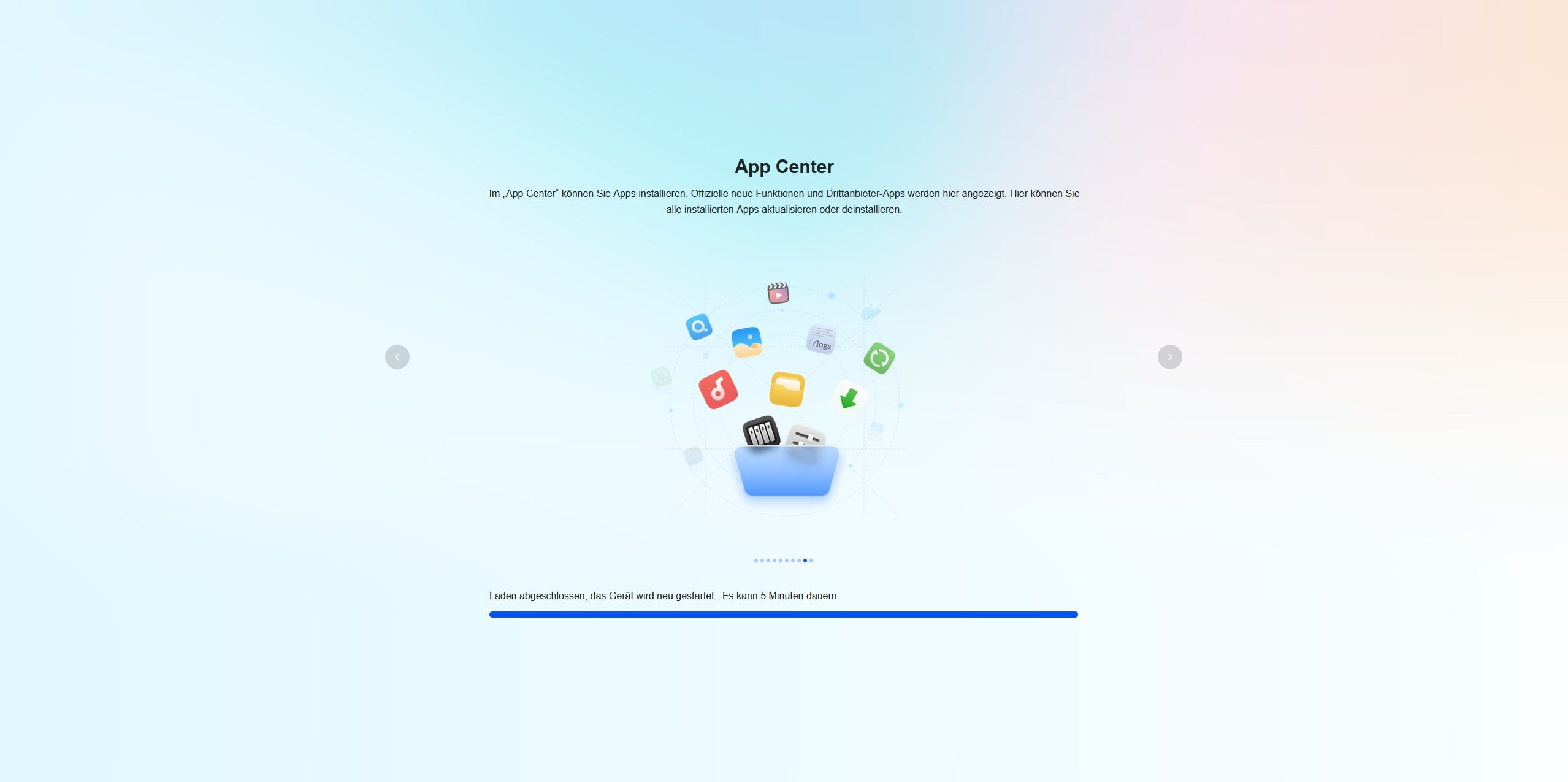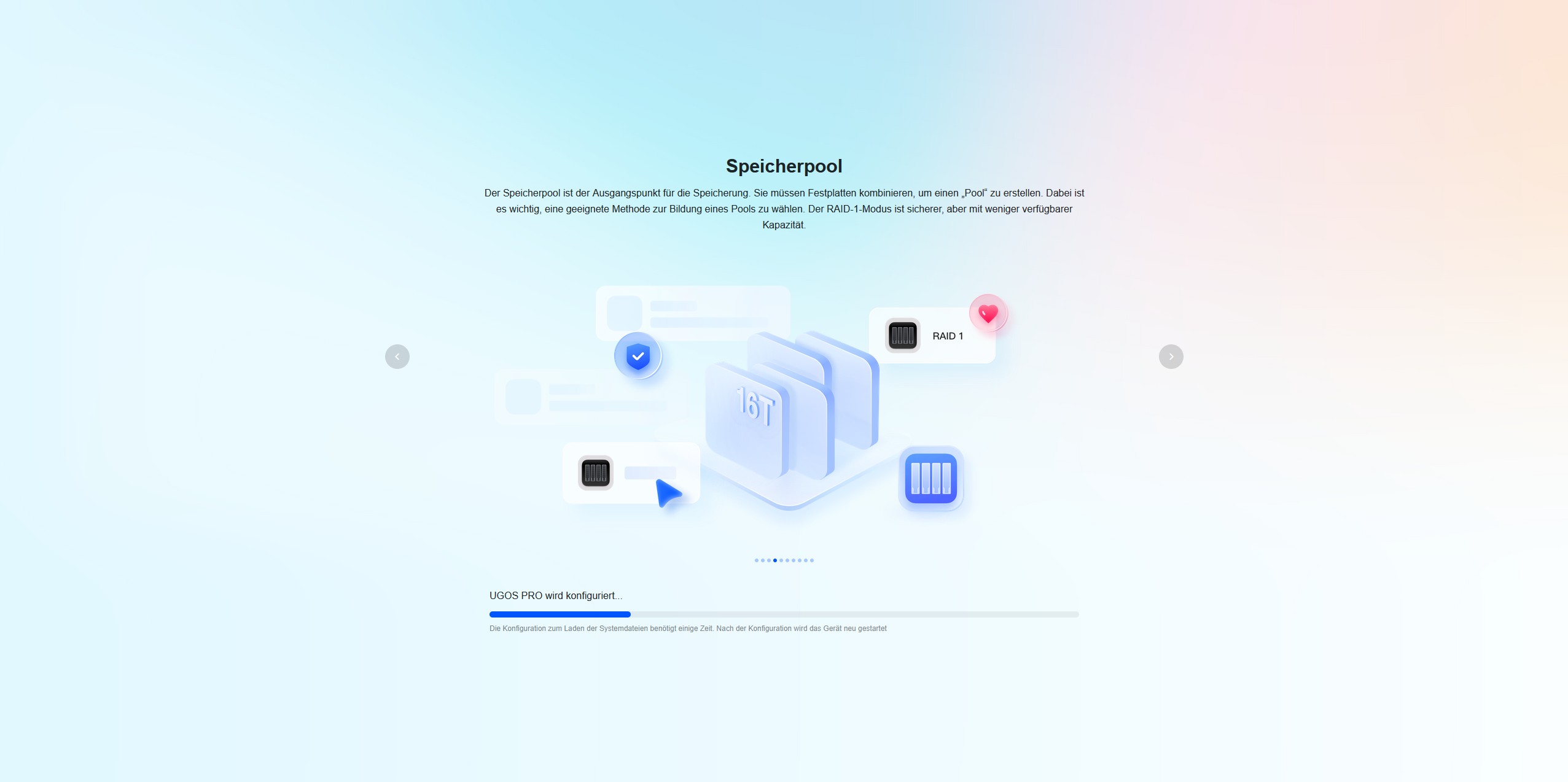 Während das System installiert wird, werden über eine Diashow zehn Tipps vorgestellt, um die Wartezeit zu überbrücken. Nach der Installation begrüßt uns der Startbildschirm mit einem Verweis auf das Benutzerhandbuch. Der Quick-Start-Guide besitzt auf der ersten Seite einen QR-Code, der uns zum UGREEN Download Center führt. Hier finden wir eine ausführliche Anleitung.