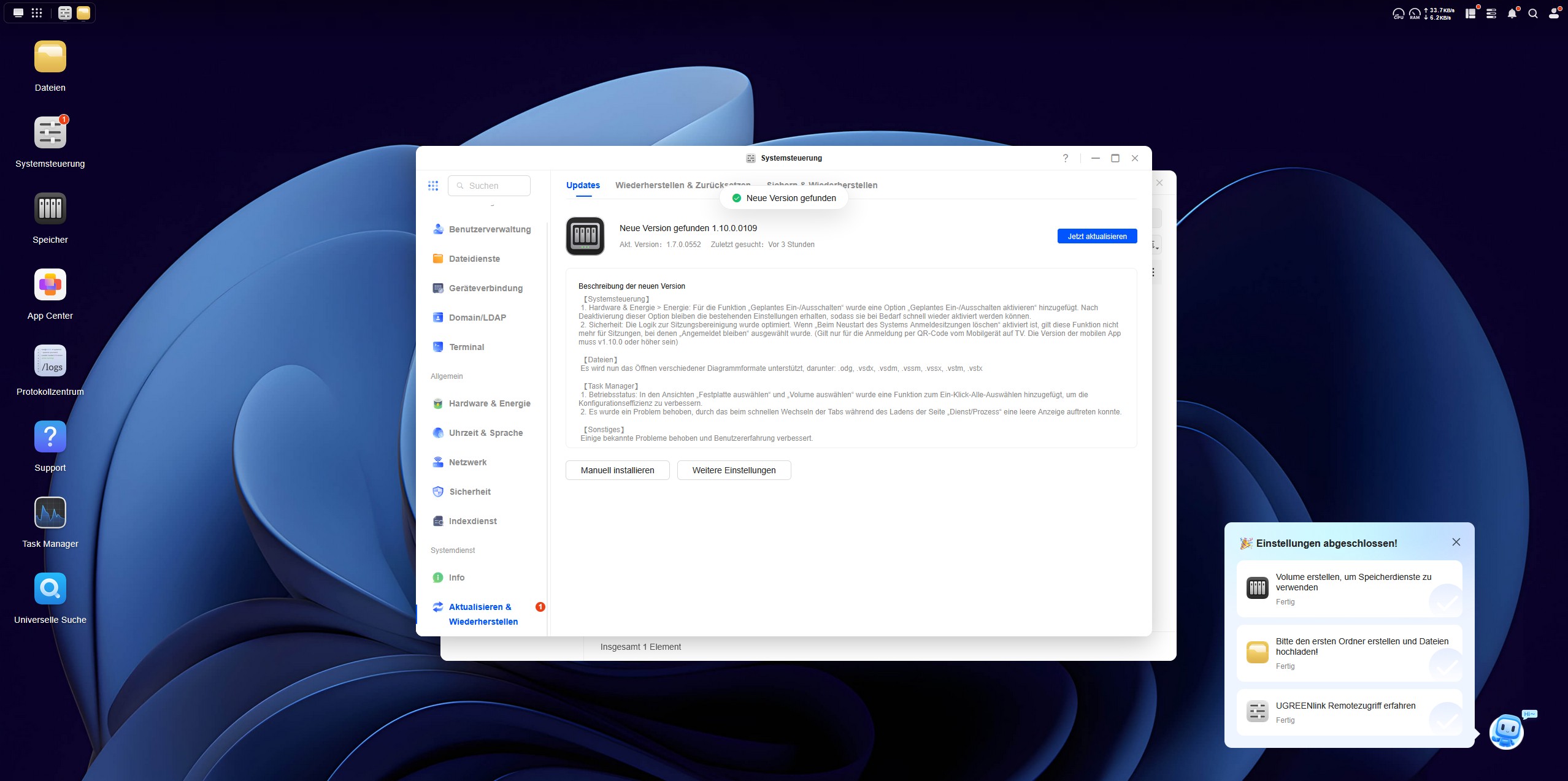 Seit März 2025 bis zum November 2025 war das Team von UGREEN fleißig und brachte einige Neuerungen in das UGOS Betriebssystem. Das äußerliche Erscheinungsbild und die Icons wurde überarbeitet. Einige Apps wurden in das System als Standard integriert und die Funktion einzelner Apps wurde stetig überarbeitet.