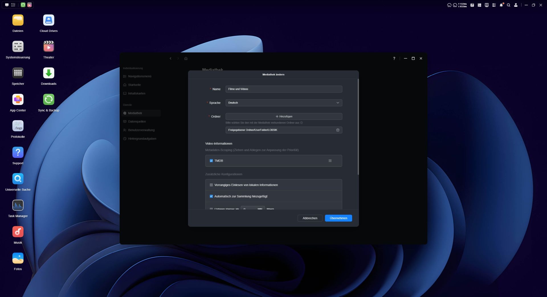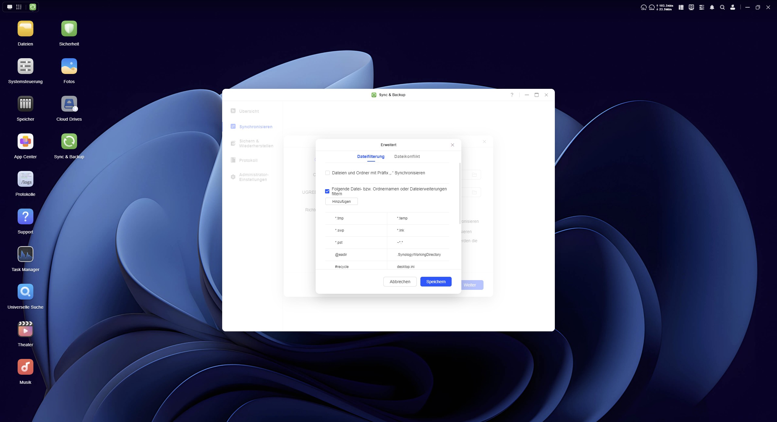 Einer der wichtigsten Aufgaben, das ein NAS-System meistern sollte, ist das Erstellen von Backups. Mit der Sync & Backup App können Verzeichnisse gewählt werden, die auf verschiedene Weisen synchronisiert werden sollen. Hierbei erstellen wir eine Synchronisationsaufgabe und den entsprechenden Pfad, wählen die Richtung der Synchronisation aus und lassen die Verzeichnisse ganz automatisch zwischen NAS und dem Gerät abgleichen. Funktioniert übrigens genauso einfach auf dem PC, wie eine Synchronisation eines mobilen Gerätes. Zudem besteht die Möglichkeit auch Dateifilterung und Konflikte zwischen Dateien ganz automatisch zu lösen, ein praktisches Tool auch zur schnellen Sortierung von Backups.