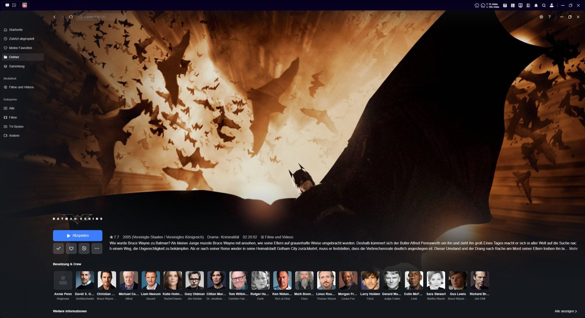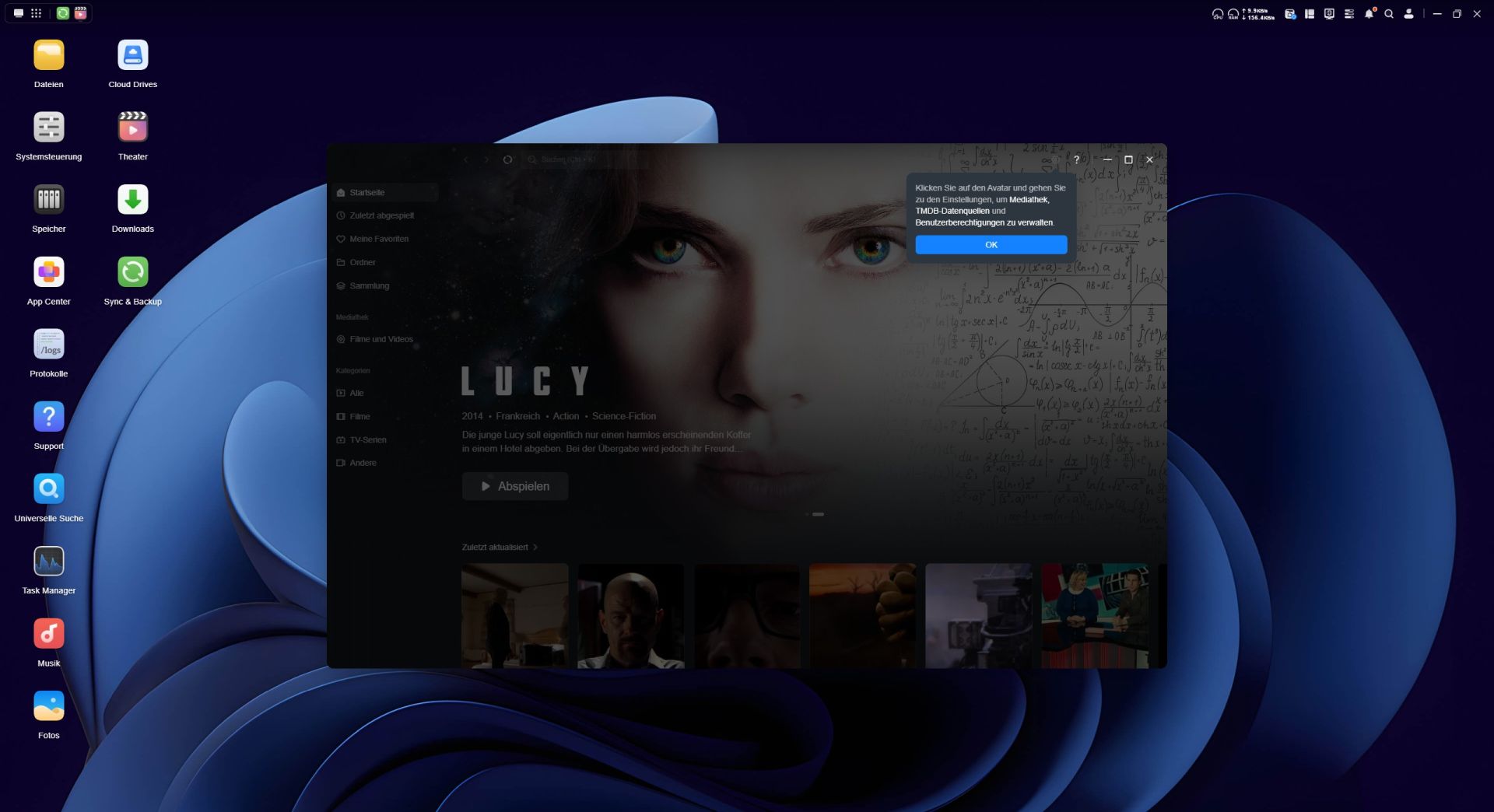 UGREEN bietet zur Verwaltung von einer Mediathek eine hauseigene App – die UGREEN Theater. Mit dieser App können wir einen eigenen privaten Streamingdienst erstellen, der glücklicherweise durch die App sehr benutzerfreundlich ist. Wir erstellen bei unserem freigegebenen Ordner ein Verzeichnis als zentralen Speicherort der Videodateien. Ob das Füllen des Ordners durch die UGREEN NAS Software oder mithilfe des SMB-Dienstes im Datei-Explorer geschieht, ist eine Geschmacksfrage, mit SMB sollte man sich lediglich im selben Netzwerk befinden. In der App erstellen wir eine Mediathek, wählen eine Sprache und füllen private Videodateien sowie Filme und Serien in den Ordner. Zusätzlich kann hier ein Schlüssel von The Movie Database aktiviert werden, sodass das UGREEN NAS durch die Datenscans eine praktische Datenbank für Filme, Schauspieler, Cover oder Beschreibungen einfügt. Die UGREEN Theater zeigt sich optisch wie ein professioneller Streamingdienst, wenn die Information vorhanden sind. UGREEN Theater merkt sich auch den Fortschritt eines Films oder einer Serie, sodass diese später fortgesetzt werden kann. Somit haben wir uns eine selbstgehostete Medienzentrale geschaffen. Das Streamen über verschiedene Medien wie Computer, Browser und Mobiltelefon ist problemlos möglich. Möchte man jedoch den Fernseher anschließen, reicht es nicht aus den HDMI-Anschluss zu nutzen, denn die Kompatibilität zwischen verschiedenen Betriebssystemen wie LG, Samsung usw. gestaltet sich umständlich. Zu erwähnen ist auch, dass leider nur Stereo bei der Widergabe möglich ist.