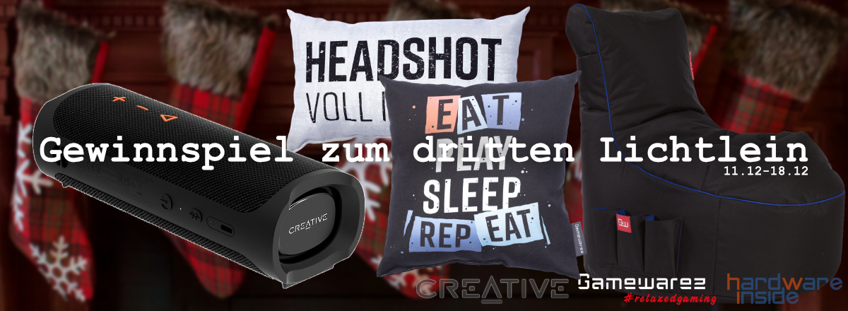 Einen frohen dritten Advent wünscht euch das HardwareInside-Team. Heute ist der Startpunkt des 3. Advents-Gewinnspiel. Selbstredend haben wir auch dieses Mal in Kooperation mit unseren Partnern Gewinne zusammengeschnürt, um euch den Dezember zu versüßen – aber überzeugt euch selbst. Ihr könnt vom 11.12 bis 18.12 unten auf den Link klicken und den Anweisungen auf Gheed folgen, damit eure Teilnahme gesichert und eure Gewinnchance möglichst hoch ist.
