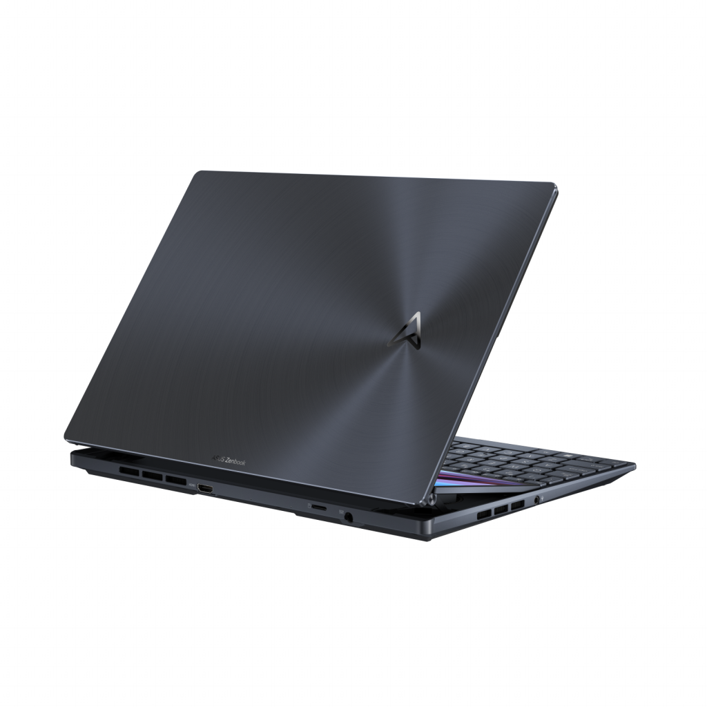 Das Zenbook Pro 14 Duo OLED verfügt über gleich zwei scharfe und schnelle Displays: das 14,5-Zoll 2,8K HDR-OLED-Hauptdisplay mit einer flüssigen Bildwiederholrate von 120 Hz und Touchfunktion im 16:10-Format und den 12,7-Zoll großen ScreenPad Plus-Touchscreen, ebenfalls mit 2,8K-Auflösung und 120 Hz Bildwiederholrate. Das NanoEdge-Hauptdisplay mit 93 Prozent Screen-to-Body Verhältnis hat eine verbesserte Spitzenhelligkeit von 550 Nits im Peak, eine PANTONE-validierte Farbgenauigkeit und eine DCI-P3-Farbraumabdeckung von 100 Prozent. Das Zweitdisplay schließt dank des AAS Ultra Auto-Tilting-Designs, das sowohl die Kühlung als auch die Ergonomie verbessert, fast nahtlos an das Hauptdisplay an und vergrößert so die Arbeitsfläche für reibungsloses Multitasking erheblich.