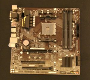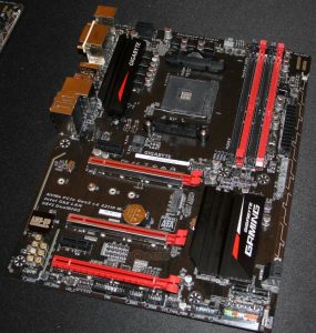 Einen Schritt weiter ist das AB350-Gaming 3, ein Gaming-Board im ATX Formfaktor und beliebtem rot/schwarzem Farbschema. Inklusive der oben genannten Features bekommt man bei diesem Board zusätzlich noch einen weiteren x16 (x4 elektrisch) und zwei x1 Slots.