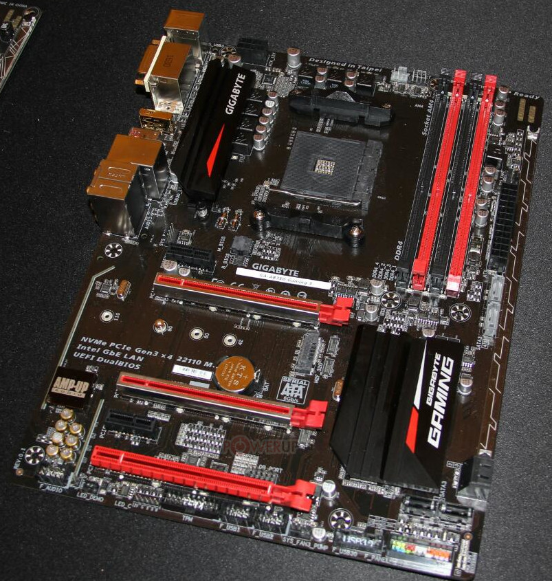 GIGABYTE hat auf der CES 2017 vier Sockel AM4 Motherboards gezeigt, die für die kommenden AMD RyZEN Prozessoren und die 7th gen A-Series APUs designed wurden. Das Lineup besteht aus dem AB350M-D3H an, einem entry-level M-ATX Board mit dem Mittelklasse B350 Chipsatz; dem mid-range AB350-Gaming 3, dem mid-high level AX370-Gaming K5 und dem AX370-Gaming 5. Das AB350-D3H deckt die Basics ab, mit 7-Phasen VRMs, einem PCI-Express 3.0 x16 Slot (an den AM4 Sockel angebunden), einem weiteren x16 Slot der elektrisch mit x4 an den B350 Chipsatz angebunden wird, einem Legacy PCI-Slot, ein 32Gb/s M.2 Slot und sechs SATA 6 Gbps Ports.