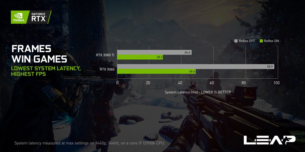 - LEAP mit einer Verbesserung der Latenzzeit um bis zu 50 % und DLSS Unterstützung.