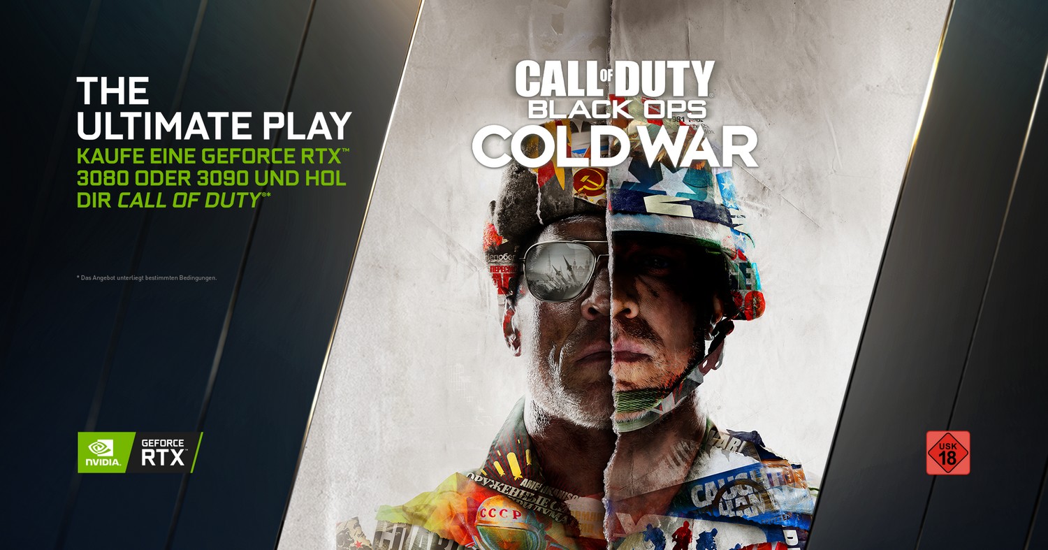 Da man diese aufregenden neuen technischen Features nur mit einer Grafikkarter der NVIDIA-GeForce-Serie erleben kann, erhalten Käufer von GeForce-RTX-3080-, GeForce-RTX-3090-Grafikkarten und Desktop-Systemen ein Exemplar der Standard Edition von Call of Duty: Black Ops Cold War. Um das Bundle zu erhalten, muss man bis zum 11. Januar 2021 eine GeForce-RTX-3090- oder 3080-Grafikkarte bei ausgewählten (Online-)Händlern kaufen.