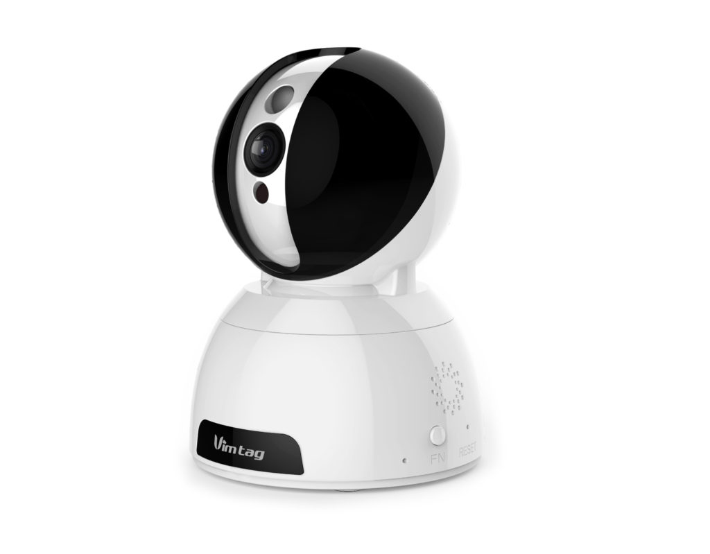 Ferngesteuert kann die Kamera horizontal um 350° und vertikal um 100° gedreht werden. Es entstehen keine toten Winkel und auch große Räume können eingesehen werden – optimal, um sonntags nachzusehen, ob im Geschäft alles in Ordnung ist. Videoaufnahmen zeichnet die Kamera mit 720p auf. Der 1/4 Zoll CMOS-Bildsensor und die Anti-Reflektionslinse liefern scharfe Foto- und Videoaufnahmen. Diese können auf der eingelegten Micro SD-Karte gespeichert werden. Alternativ steht mit der optionalen „Vimtag Cloud Storage Box“, auch eine Cloud als Speicherort zur Verfügung. Nimmt der Einbrecher das Gerät also mit oder zerstört sie, ist sein Video bereits in der Cloud gesichert. Dabei ermöglicht eine 1024-bit-Verschlüsselung eine hohe Datensicherheit. Die Kamera kann wahlweise über WLAN oder LAN mit dem Heimnetzwerk verbunden werden. Auf Wunsch nimmt die smarte Cam auch Fotos auf. Im Einsatz als Babyphone, wird das erste Lächeln so direkt eingefangen.