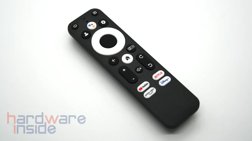 Die beigelegte Fernbedienung ähnelt den Fernbedienungen anderer Android-TV Geräte, was wir gar nicht negativ bewerten wollen. Die Fernbedienung bietet ein intuitives Layout und Tasten für den Schnellzugriff auf die größten Streaming-Anbieter. Außerdem bietet sie eine Taste für den Google Assistant, der eine Sprachsteuerung des Gerätes ermöglicht.