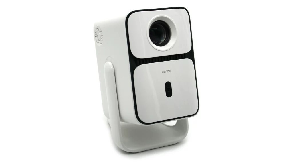 Der Wanbo T2 Ultra zeichnet sich durch sein minimalistisches und modernes Design in Glacier White aus. Mit einer Größe von nur 145 x 142 x 219 mm und einem Gewicht von rund 1,5 Kilogramm lässt sich der Beamer leicht transportieren und flexibel im Raum platzieren. Ein besonderer Clou: Der integrierte Standfuß ermöglicht eine flexible Projektion in einem Winkel von 120° – dank Schraubgewinde sogar an der Decke. Anders als herkömmliche Beamer, erlaubt der Wanbo T2 Ultra eine einfache Neigung, was eine besondere Flexibilität erlaubt und somit viele Anwendungsgebiete eröffnet. Die Neigung ist stufenlos einstellbar und erlaubt sogar eine senkrechte Projektion. In jeder Ausrichtung ist der Projektor stabil und die Anschlüsse leicht zugänglich.