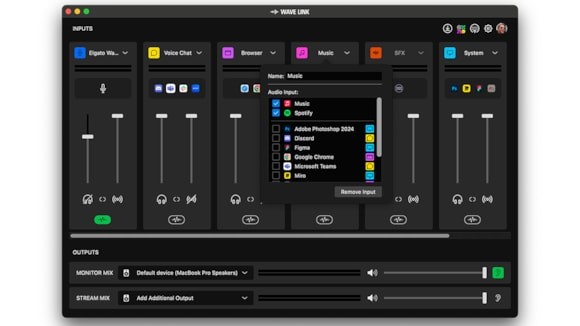 Jetzt können Windows-Benutzer das gleiche nahtlose Audio-Routing genießen wie die Benutzer von macOS. Mit einem einzigen Klick können Sie eine App wie Discord oder Spotify zu einem beliebigen Eingangskanal hinzufügen. Wave Link erfasst automatisch die Audiodaten Ihrer Anwendung, ohne dass Sie die Windows-Einstellungen anpassen müssen. Außerdem merkt sich Wave Link die Einstellungen Ihres Setups, so dass Sie nach Updates keine Neukonfiguration vornehmen müssen.