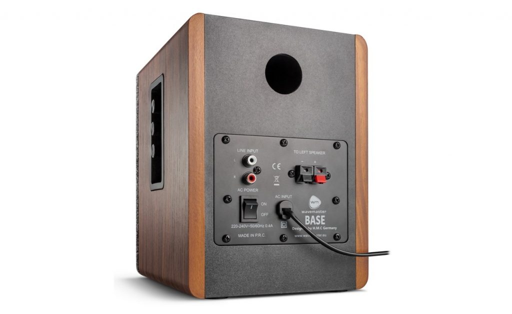 Bei den Anschlüssen weiß der BASE ebenfalls zu überzeugen: Neben einem Line-Eingang mit RCA- (Cinch-) Buchsen kann der Aktivlautsprecher auch via Bluetooth Musik von mobilen Endgeräten wie Smartphones oder Tablets streamen. Ebenfalls nicht fehlen darf ein Kopfhöreranschluss für 3,5-Millimeter-Klinke-Stecker. Die Bedienung der kompakten Lautsprecher erfolgt über drei seitlich angebrachte Drehregler, welche die individuelle Anpassung von Lautstärke, Bass und Höhen erlauben. Hinsichtlich des Stromverbrauchs im Standby-Betrieb darf der wavemaster BASE als echter Musterknabe gelten: Wenn kein Signal an den Lautsprechern anliegt, werden weniger als 0,5 Watt verbraucht.