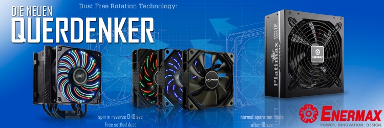 Hamburg, 15. August 2016. Enermax präsentiert die ersten Produktserien mit der patentierten DFR™-Technologie. Neben dem neuen Platimax D.F. Netzteil mit 80PLUS® Platinum Zertifizierung, wird auch der neue CPU-Kühler ETS-T50 AXE und der Lüfter D.F. Pressure mit DFR™-Technologie, ausgestattet sein.