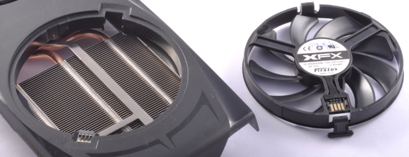 XFX hat auch die Heatpipes stark überarbeitet. Sie bestehen nun aus zwei Layern: Oberhalb der klassischen gesinterten Heatpipe sind kleine Mikrorillen in das Material eingelassen, welche die Kühloberfläche sogar intern um etwa 30% vergrößern. - HARD SWAP Interchangeable Fan