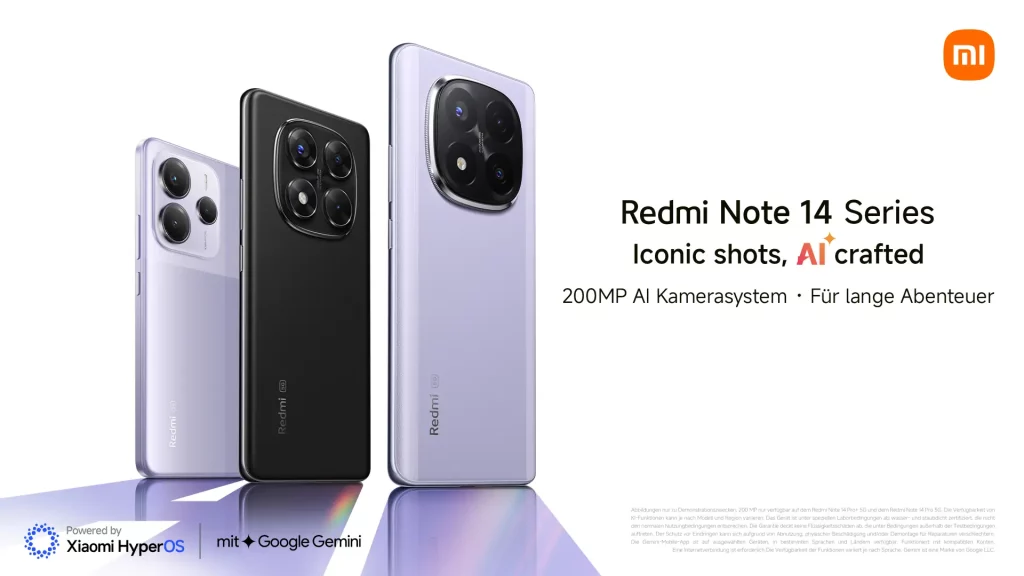 Mit der Redmi Note 14 Serie präsentiert Xiaomi eine Kombination aus leistungsstarker Performance, beeindruckender Fotografie und robuster Haltbarkeit, die alle Anforderungen des modernen Lebens erfüllt. Von hochauflösenden Kamerasystemen mit fortschrittlichen KI-Tools über das widerstandsfähige Design mit Staub- und Wasserschutz bis hin zu starker Performance und langer Akkulaufzeit setzt die Redmi Note 14 Serie neue Maßstäbe in ihrer Kategorie. Sie macht Premium-Funktionen einem breiteren Publikum zugänglich und bietet in jeder Hinsicht ein außergewöhnliches Preis-Leistungs-Verhältnis.