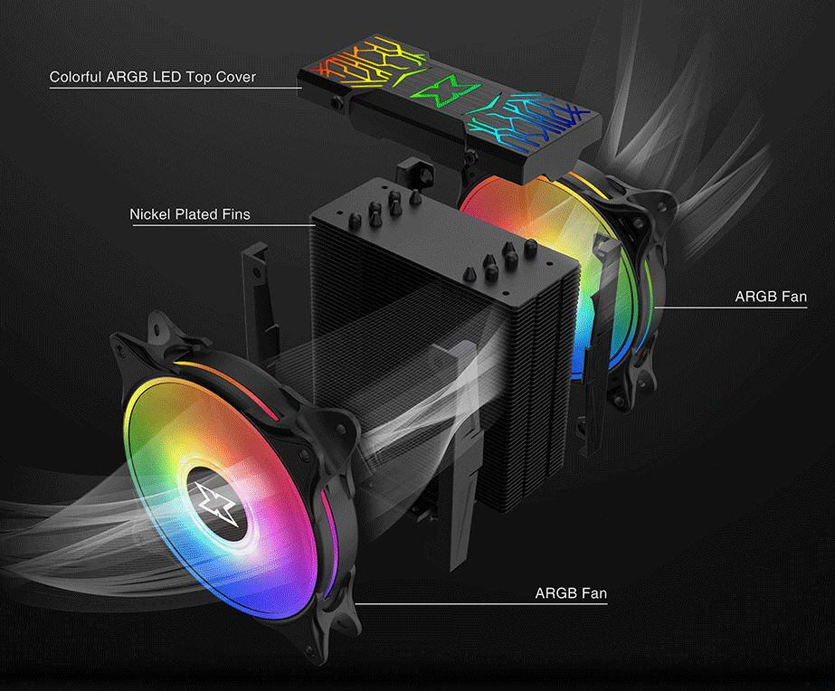 Ein einziger 3-Pin adressierbarer RGB-Anschluss sorgt für die Beleuchtung aller drei Elemente (die beiden Lüfter und die Oberseite des Kühlkörpers). Das Unternehmen bietet auch einen 4-Pin-PWM-Lüfter-Splitter an, falls das verwendete Motherboard zwei 4-Pin-Lüfteranschlüsse in der Nähe des CPU-Sockels vermissen lässt. Die beiden enthaltenen XIGMATEK Galaxy II Pro ARGB-Lüfter, die jeweils zwischen 800 und 1.800 Umdrehungen pro Minute drehen und bis zu 58,5 CFM Luft mit einem Geräuschpegel von bis zu 25,3 dBA erzeugen. Die Ventilatoren sind mit hydrodynamischen Lagern mit einer Nennleistung von 50.000 Stunden ausgestattet. Mit seiner Deckplatte und den eingebauten Lüftern misst der XIGMATEK WindpowerPRO 110 mm x 125 mm x 157 mm (LxBxH). Das Unternehmen bewertet seine Wärmekapazität mit 200 W. Zu den unterstützten CPU-Sockeltypen gehören AM4, LGA115x und LGA2066. Das Unternehmen hat die Preise nicht bekannt gegeben.