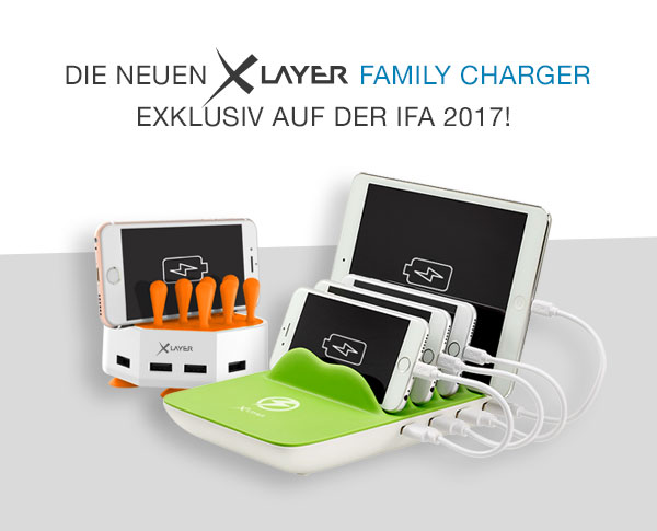 Schon in kleinen Haushalten ist inzwischen oft so eine Fülle von Mobilgeräten vorhanden, dass schnell die Steckdosen zum Aufladen knapp werden. Abhilfe schafft XLayer hier mit den neuen Family Chargern: Diese Produkte bieten als schick gestaltete USB-Hubs mehrere Ladeanschlüsse gleichzeitig, benötigen aber nur einen Stromanschluss. Über vier bis sechs Anschlüsse verfügen die Ladestationen sowie teilweise über integrierte Halterungen für alle Mobilprodukte vom Smartphone über das Tablet bis hin zum eBook-Reader. Die Maxi-Variante hat sogar eine Induktionsladefläche für völlig kabelloses Aufladen integriert. Interessierte können sich auf der IFA 2017 einen eigenen Eindruck von den neuen XLayer Family Chargern verschaffen.