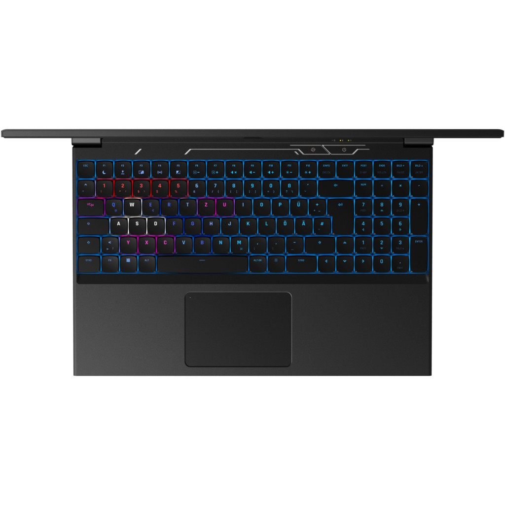 Die Tastatur des XMG NEO 15 bringt gleich mehrere Neuerungen mit. Ihre spezielle, optomechanische Funktionsweise sorgt im Vergleich zur herkömmlichen Rubberdome-Variante für eine verbesserte Langzeithaltbarkeit und bietet taktiles Feedback. Das speziell an den Bedürfnissen von Spielern ausgerichtete Eingabewerkzeug unterstützt Anti-Ghosting und N-Key-Rollover. Ein präziser Druckpunkt, der bei einer Betätigungskraft von 60 cN überwunden wird, sorgt für eine exakte Umsetzung der Eingaben. Zudem verfügt das gesamte Keyboard über eine für jede Taste separat ansteuerbare RGB-Hintergrundbeleuchtung, deren Farbe sich via Software nach Belieben anpassen lässt. Beleuchtungsschemata und -effekte werden in unterschiedlichen Profilen abgespeichert.
