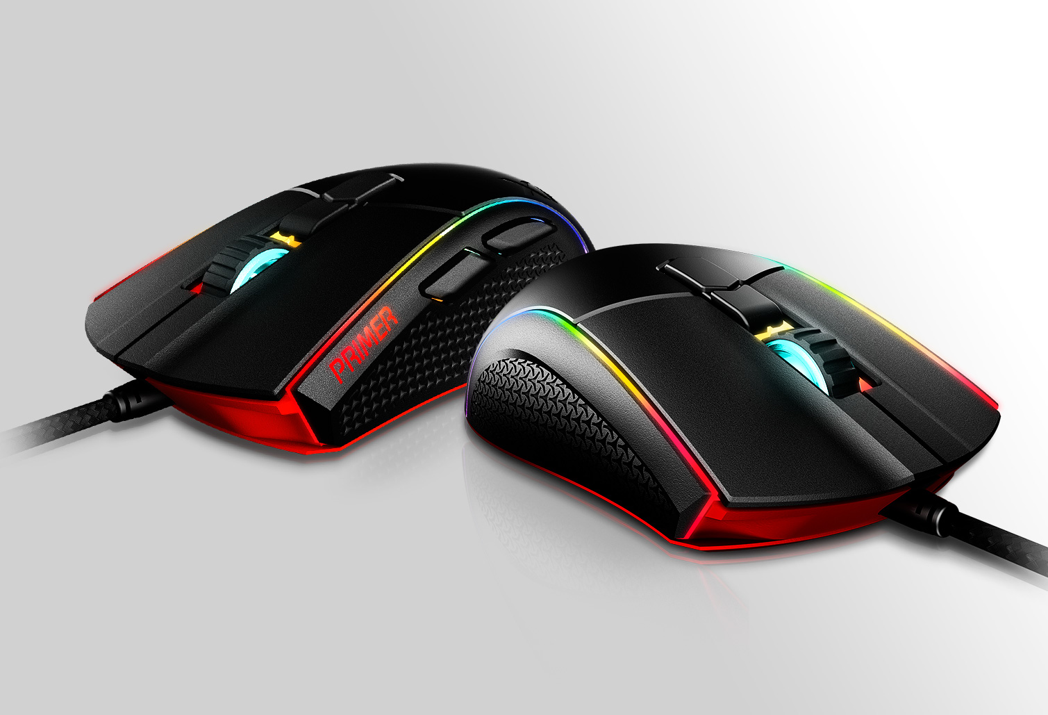Die XPG PRIMER überzeugt mit einer langen Lebensdauer, dank der äußerst beständigen OMRON-Schalter, welche für 20 Millionen Klicks ausgelegt sind. Für den perfekten Gaming-Look bietet die XPG PRIMER zwei RGB-Lichtstreifen an den Seiten und RGB-Akzente am Scrollrad.