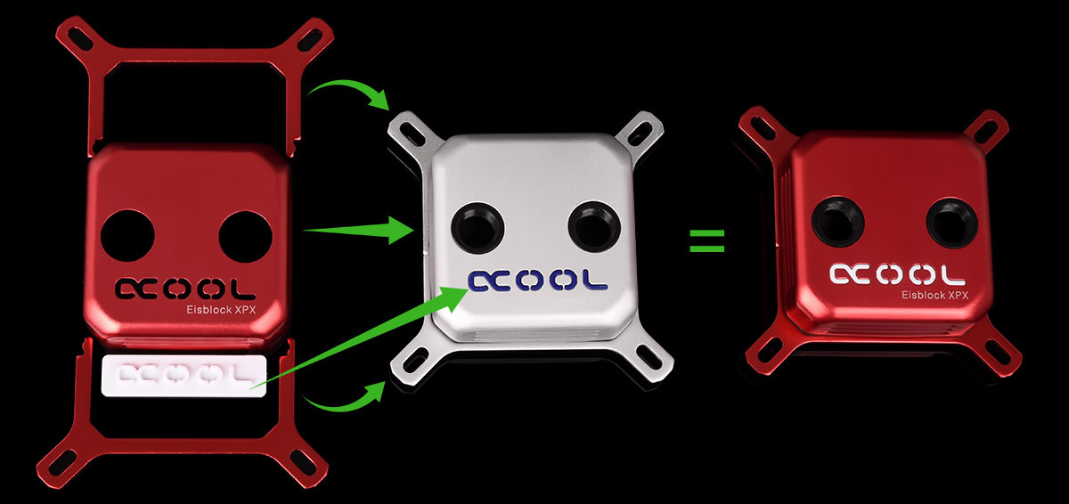 Kreiere mit den neuen Modding Kits, und weiteren Versionen des Alphacool Eisblock XPX CPU Kühlers, deinen eigenen Style! 1080 mögliche Variationen stehen zur Verfügung!