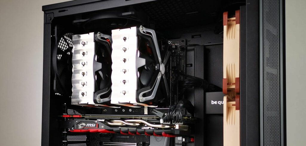 So sieht der Kühler samt Lüftern verbaut aus. Man kann sehr gut erkennen, welche Ausmaße der Kühler hat.