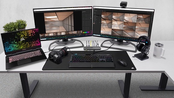Egal ob Ihr Setup die umfassenden Anzeigeoptionen von Thunderbolt 4 oder Thunderbolt 3 benötigt, die CORSAIR-Docks kombinieren umfassende Konnektivität und Performance mit mühelosem Style für Ihren Schreibtisch.